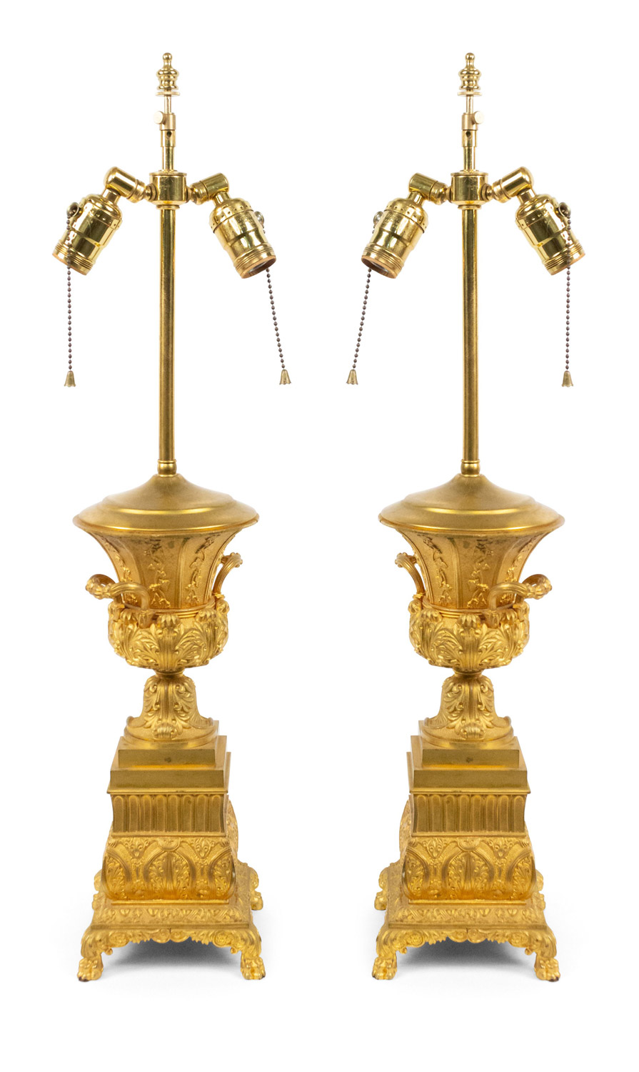 Pair of FrenchCharles X Bronze Dore Urn Table Lamps
