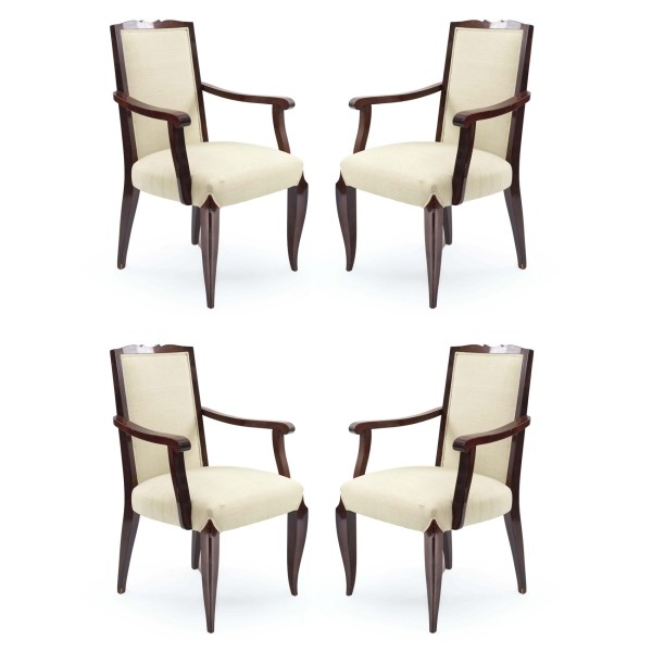 Leon Jallot (1884-1967) was a prominent French furniture designer and decorator known for his innovative approach to Art Deco design. He played a significant role in shaping the aesthetic of French decorative arts in the early 20th century. Born in Paris in 1884, Jallot showed an early interest in design and craftsmanship. He studied at the prestigious Ecole Boulle, where he honed his skills in furniture making and interior design. After completing his education, Jallot started working for renowned furniture houses such as Maison Moderne and La Maîtrise. In the 1920s, Jallot embraced the emerging Art Deco movement, which was characterized by its geometric forms, luxurious materials, and bold colors. He became known for his ability to blend traditional craftsmanship with modern design principles. Jallot's furniture pieces often featured clean lines, sleek surfaces, and intricate detailing, showcasing his mastery of both form and function. Jallot's work attracted the attention of influential clients and collectors, including the French bourgeoisie and international elite. His designs were sought after for their elegance, sophistication, and timeless appeal. He collaborated with renowned architects and interior designers of the time, such as Jacques-Emile Ruhlmann and Jean-Michel Frank, further establishing his reputation as a leading figure in the field. Throughout his career, Jallot exhibited his work at prestigious events such as the Exposition Internationale des Arts Décoratifs et Industriels Modernes in Paris in 1925. His creations were highly regarded for their exceptional craftsmanship and innovative design concepts. Jallot's furniture pieces often incorporated exotic woods, luxurious upholstery, and intricate marquetry, showcasing his attention to detail and commitment to excellence. In addition to his furniture designs, Jallot also worked as an interior decorator, transforming spaces with his refined taste and unique vision. He created harmonious environments that combined his furniture pieces with carefully selected decorative objects, creating a cohesive and visually stunning aesthetic. Leon Jallot's contributions to the world of furniture and decorative arts continue to be celebrated today. His designs are highly sought after by collectors and enthusiasts, and his influence can be seen in contemporary furniture design. Jallot's legacy as an innovative and talented designer remains an important part of the Art Deco movement and the history of French decorative arts.