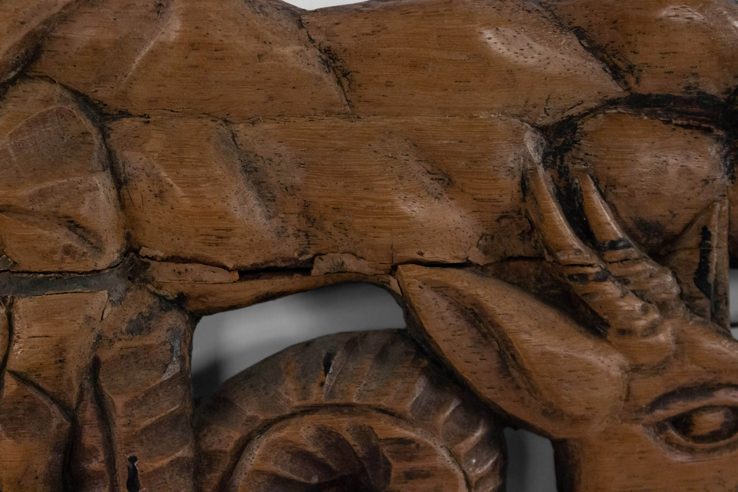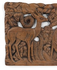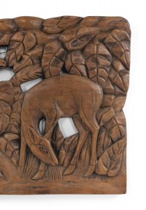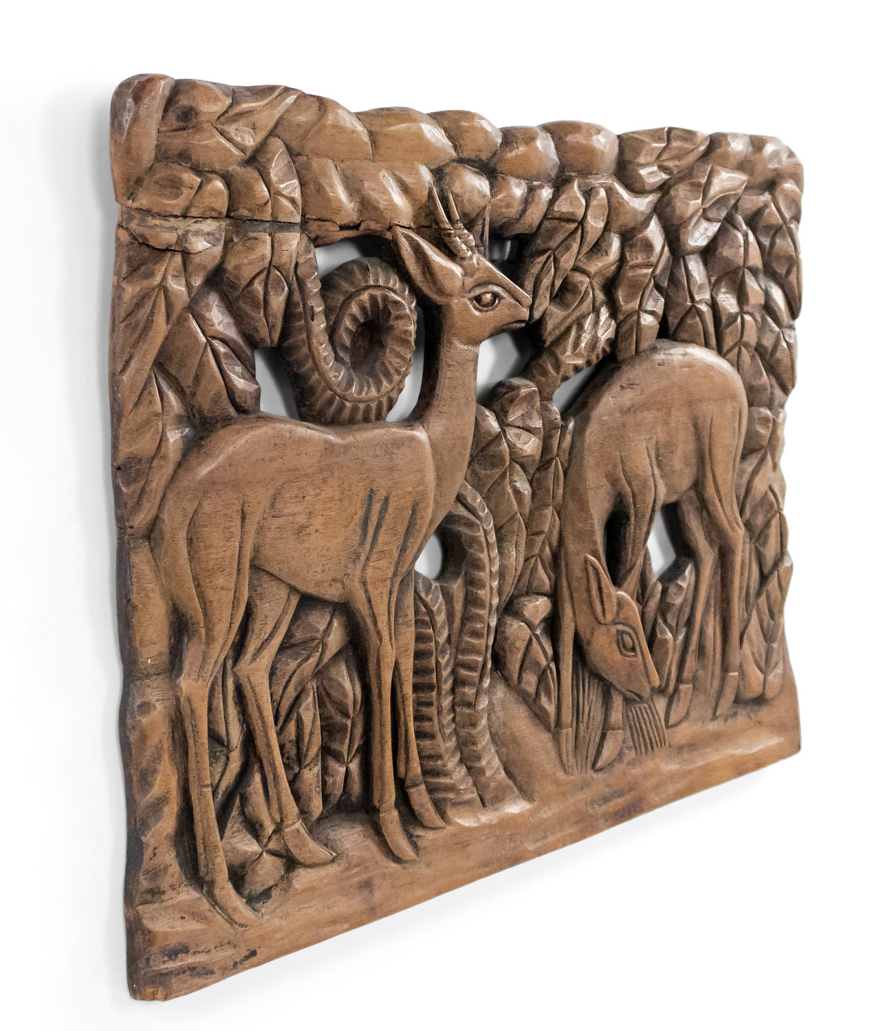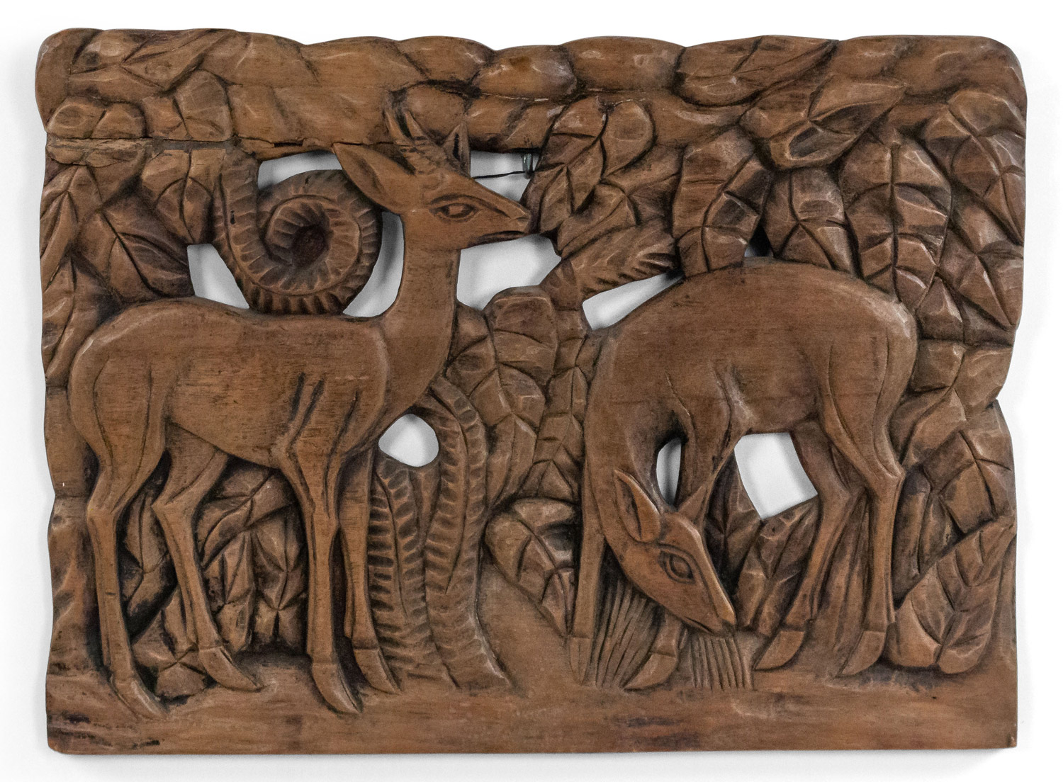 French Art Deco stripped walnut carved wall plaque of 2 fawns.