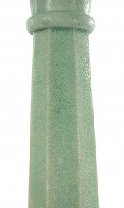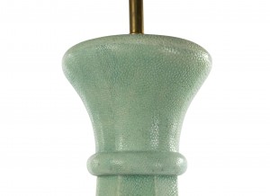 French Art Deco style green shagreen and bone inlaid trim table lamp with a tapered octagonal shape.