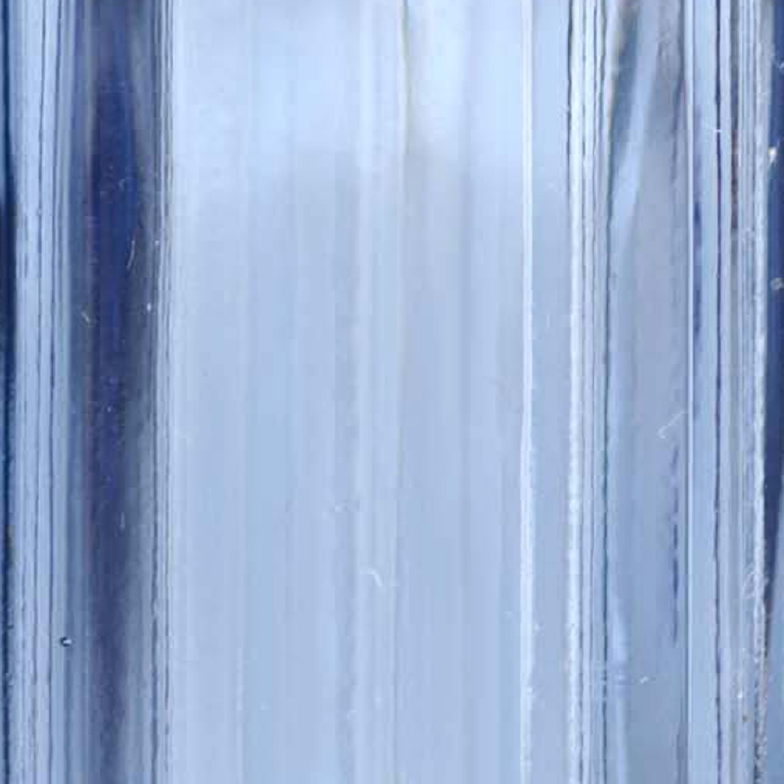 French Art Deco small cylindrical, skyscraper-shaped blue-tinted ribbed glass perfume bottle with a round ribbed turquoise plastic stopper (signed LALIQUE for Worth)