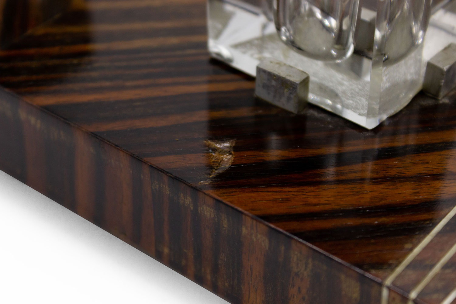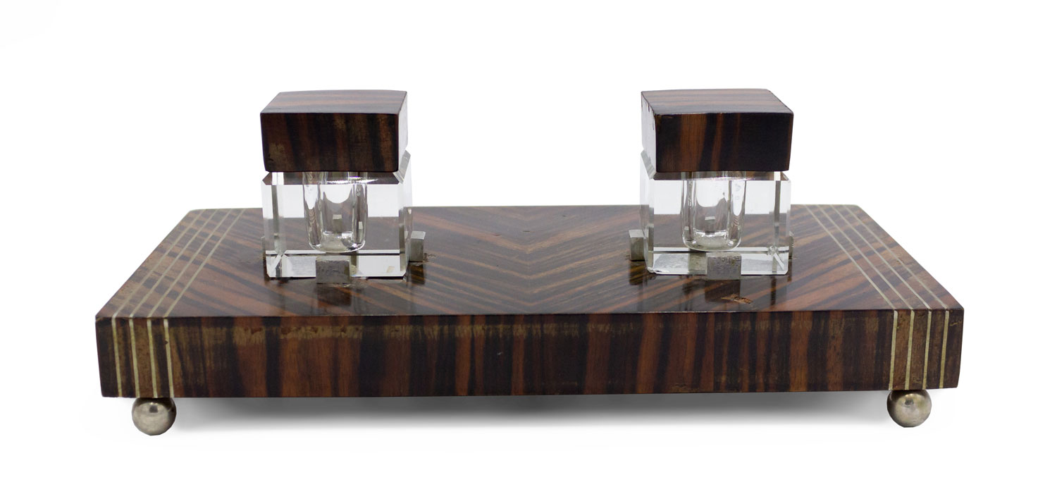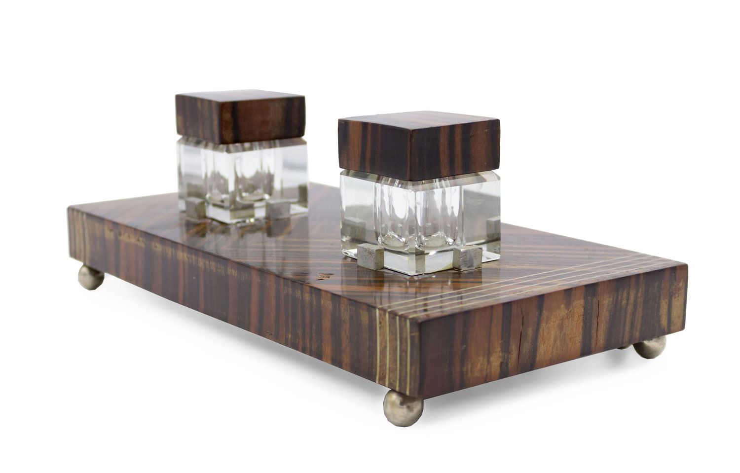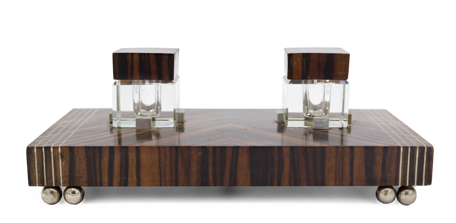 Style: Art Deco Materials & Techniques: Crystal, inlaid, palisander, pewter, rosewood Category: Office/Library, Accessories/Décor/Bric-a-Brac