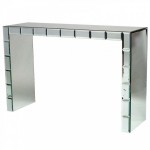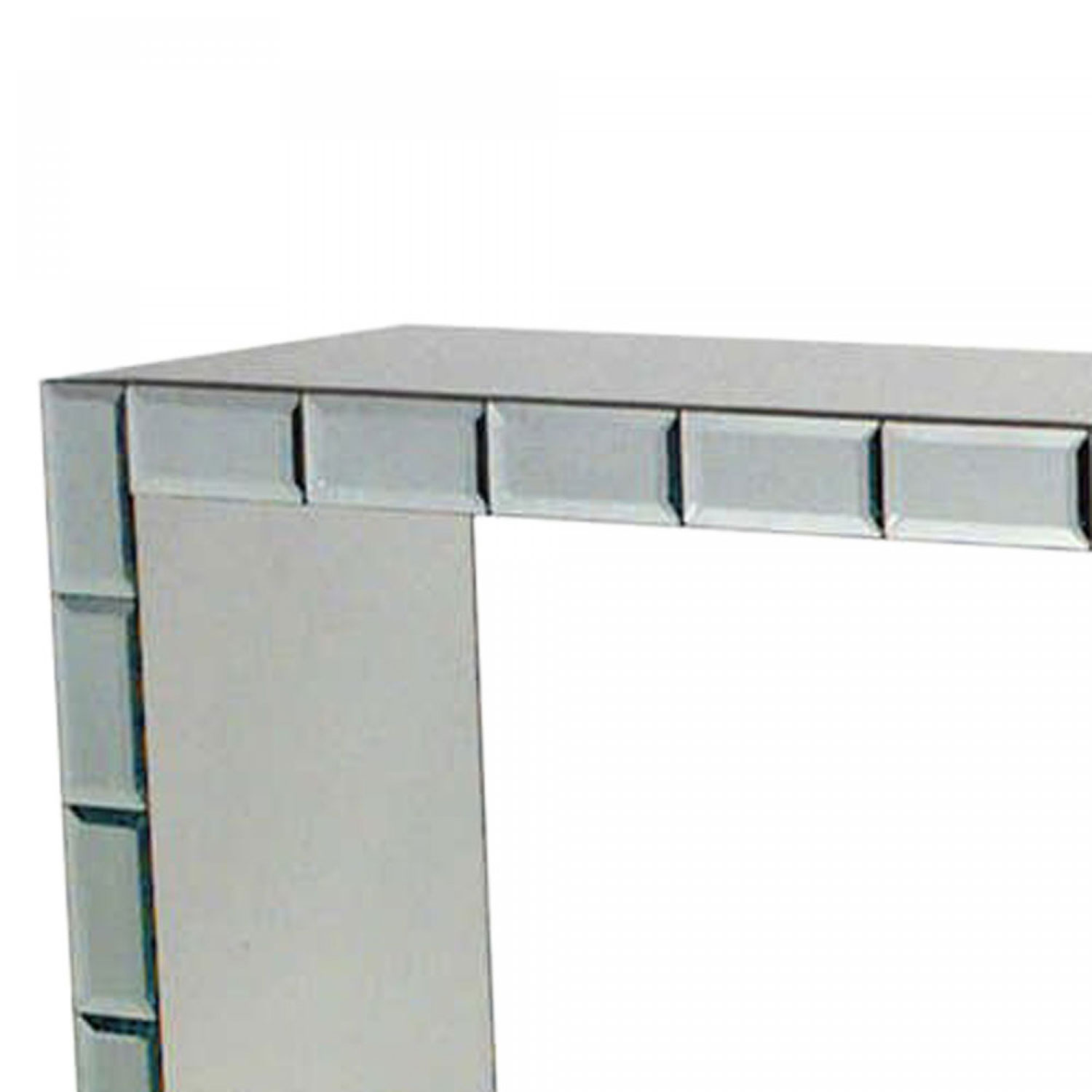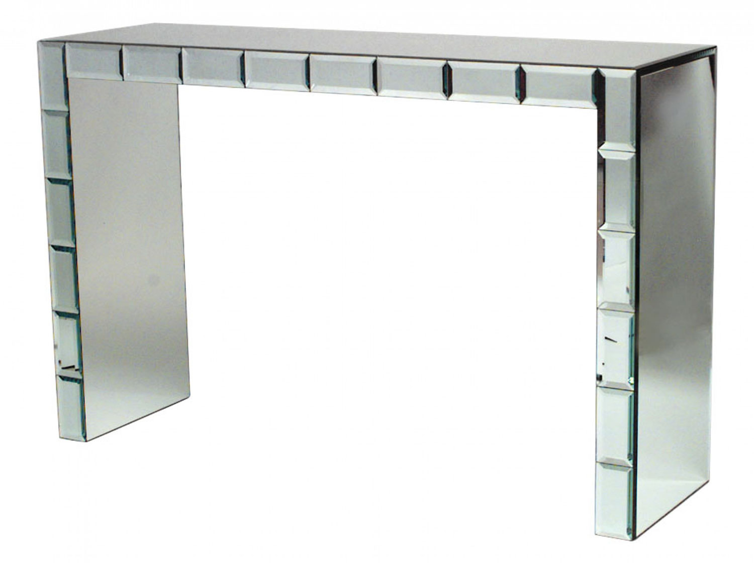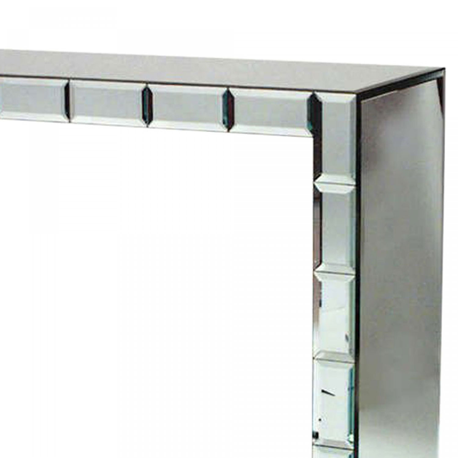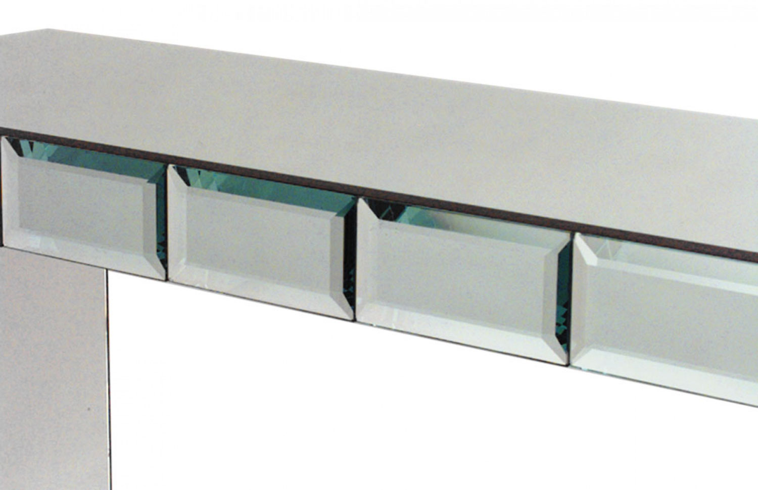 French Art Moderne mirrored rectangular console table with bevelled paneled apron and front legs.