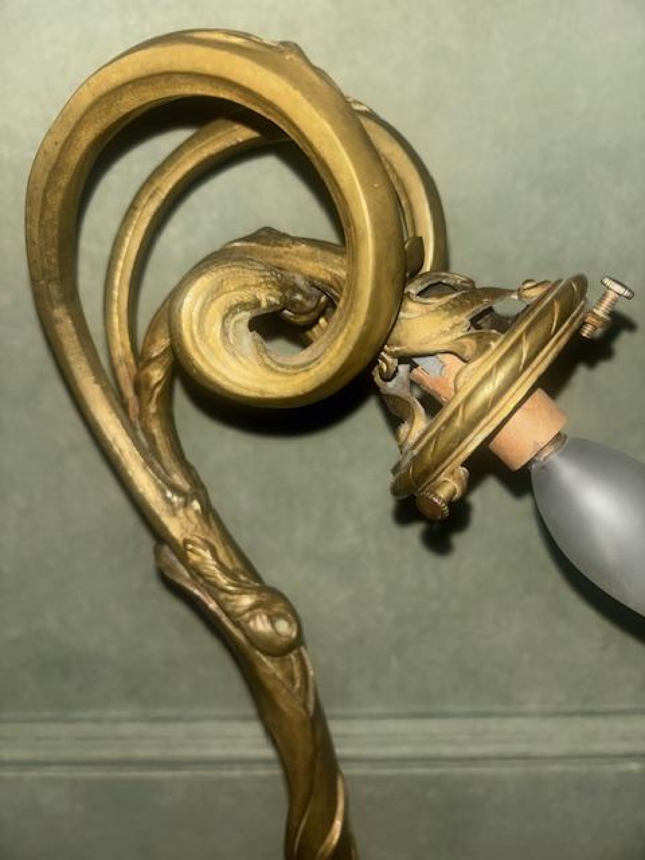 Style: Art Nouveau Materials & Techniques: Bronze, glass Category: Lighting Condition: Ships without a shade