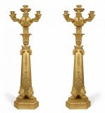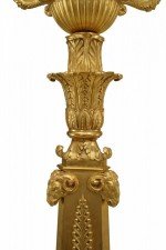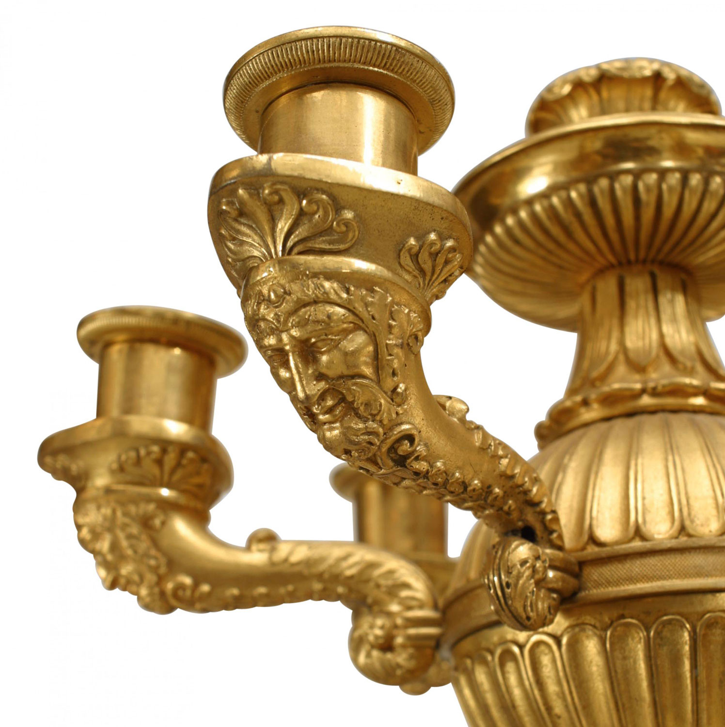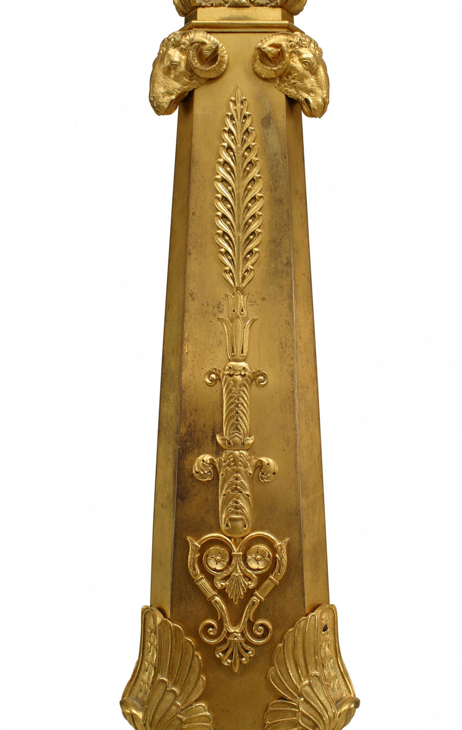 Pair of French Empire Bronze Dore Ram Head Candelabras