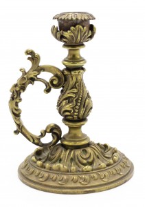 French Louis XV-style (19th Cent) bronze candlestick with handle.