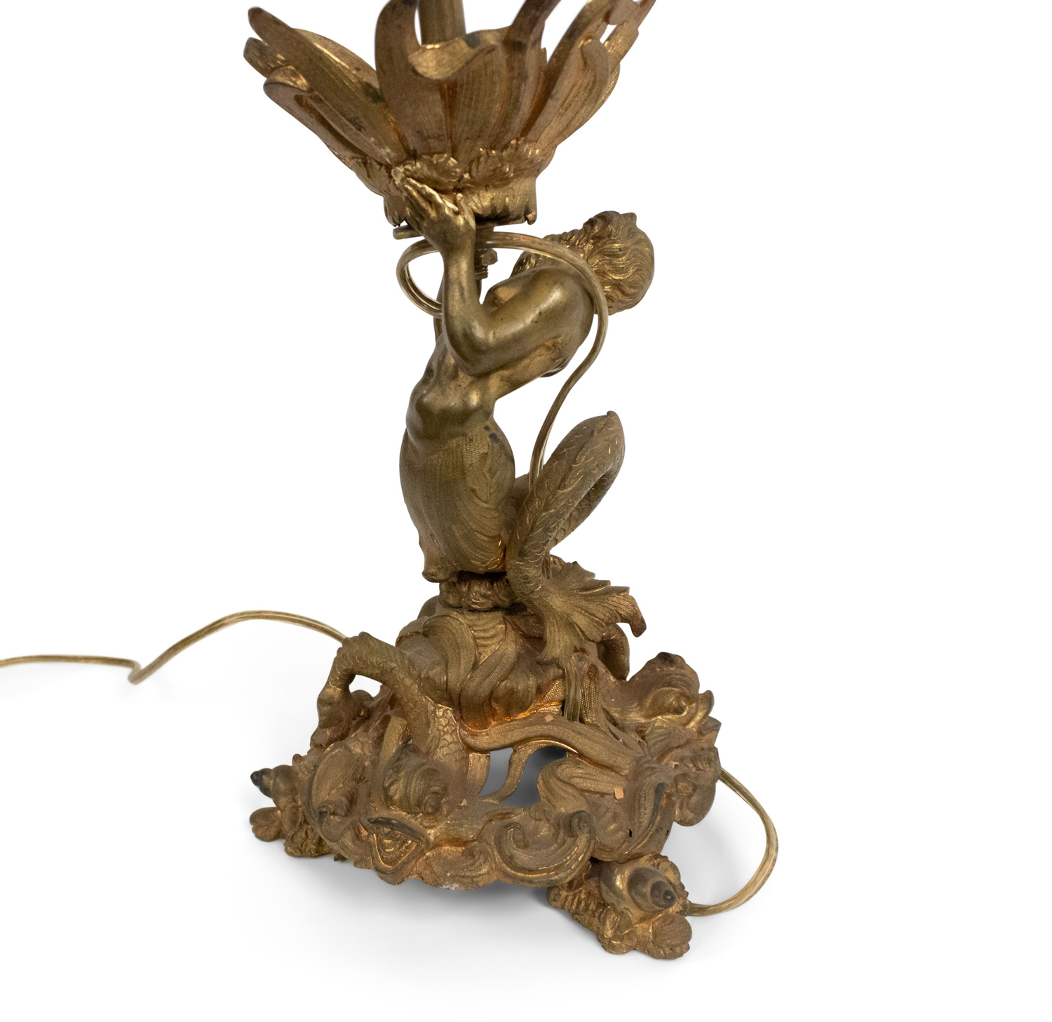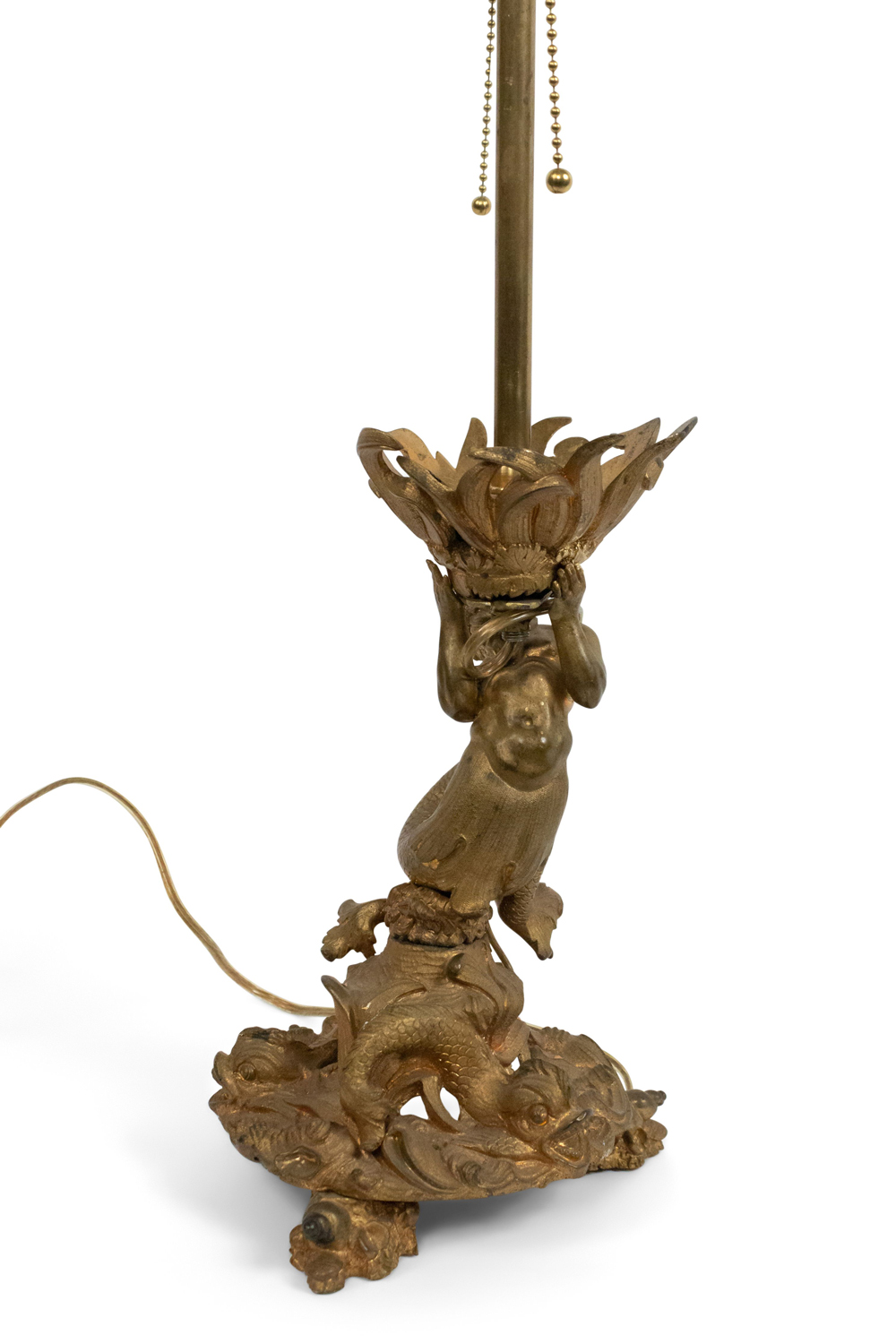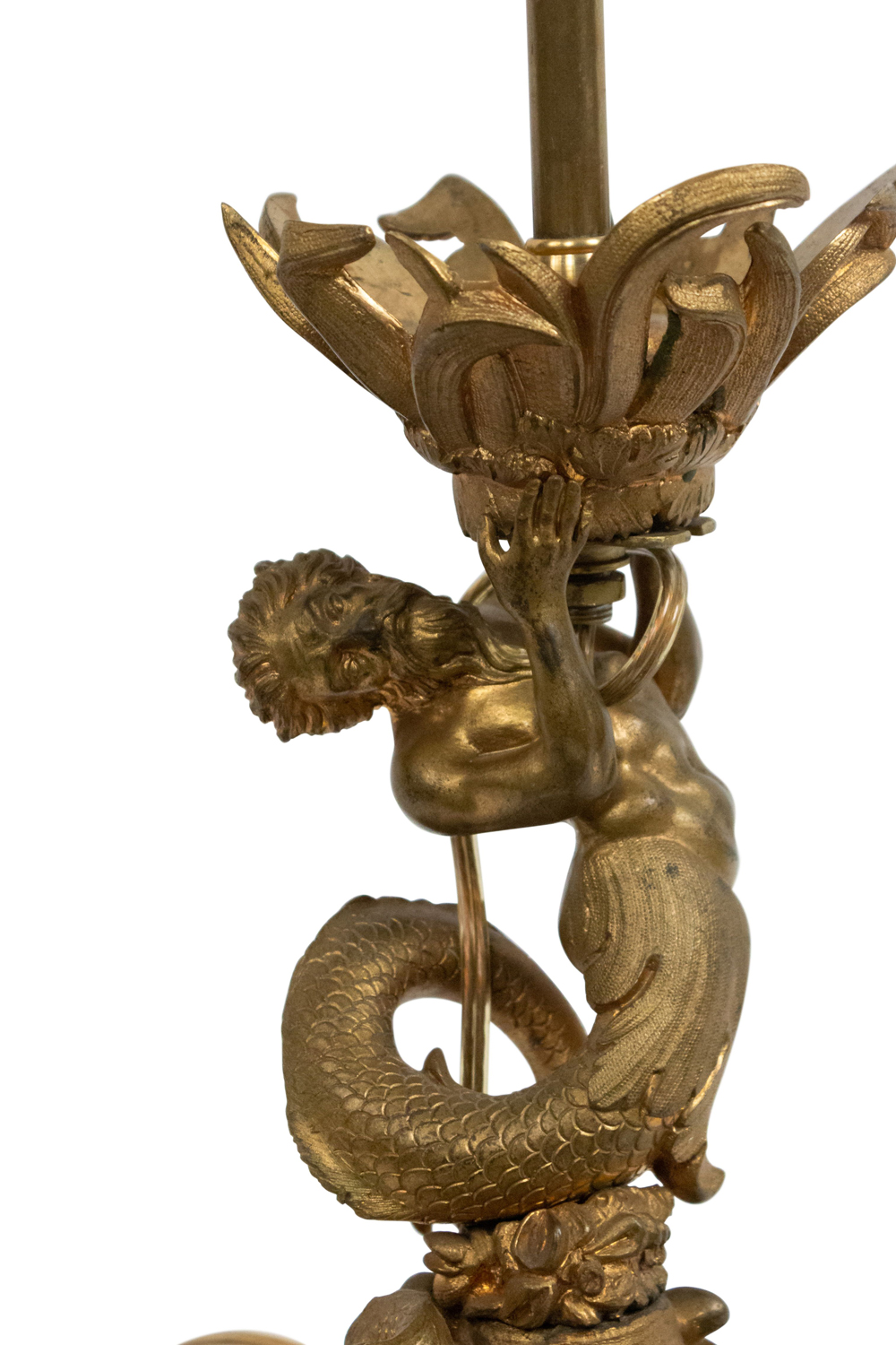 Style: French Materials & Techniques: Bronze, bronze dore, etched, glass Category: Lighting Condition: Ships without a shade. Condition consistent with age