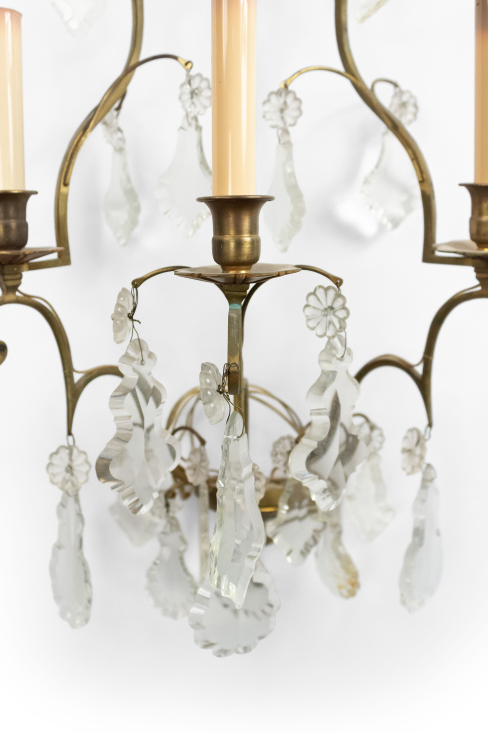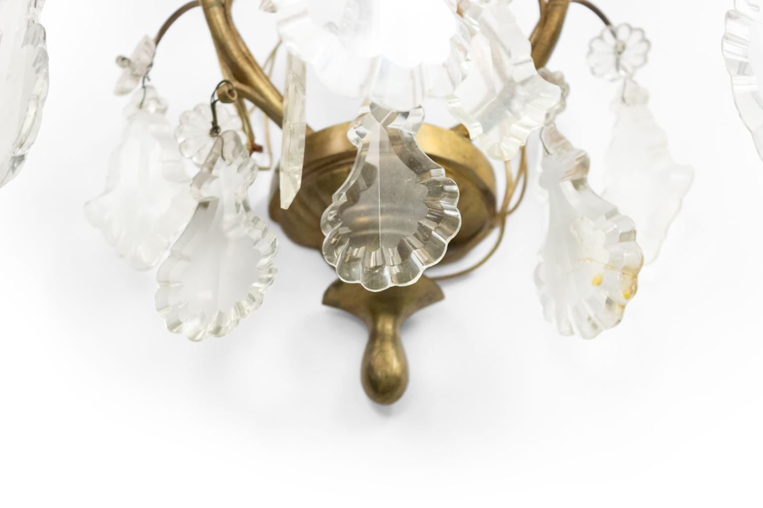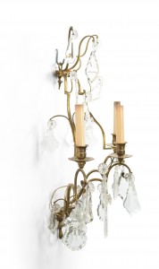 French Louis XV Style Bronze and Crystal Wall Sconces