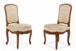 PAIR of French Louis XV style (19th Cent) walnut side chairs with a floral carved frame and upholstered seat & back.