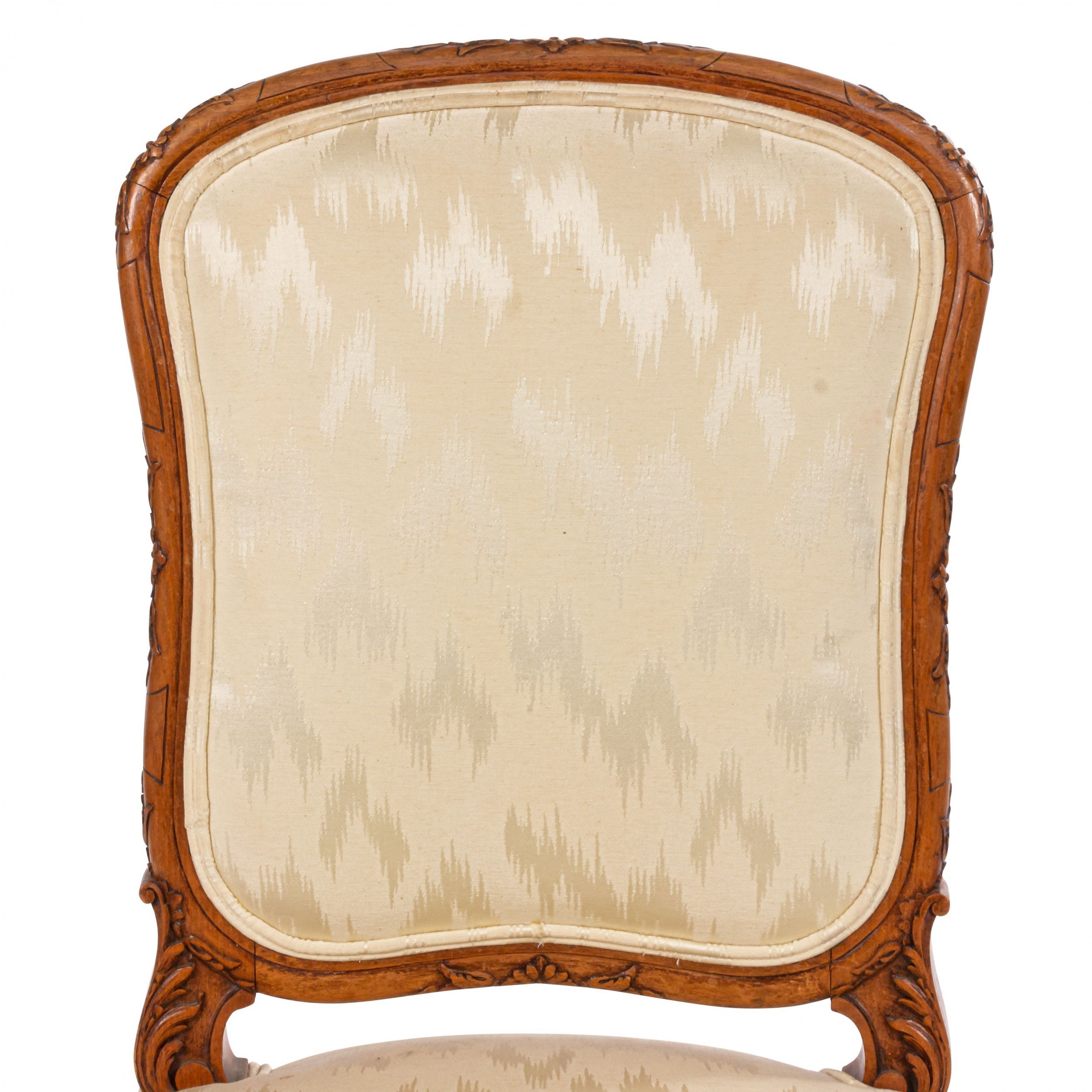 Style: French Materials & Techniques: Walnut, carved Category: Seating Condition: Please note there are stains and marks to the upholstery.