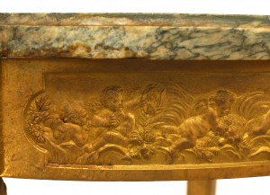 Style: French Materials & Techniques: Bronze, bronze dore, marble Category: Tables Condition: Slightly visible crack on the marble.