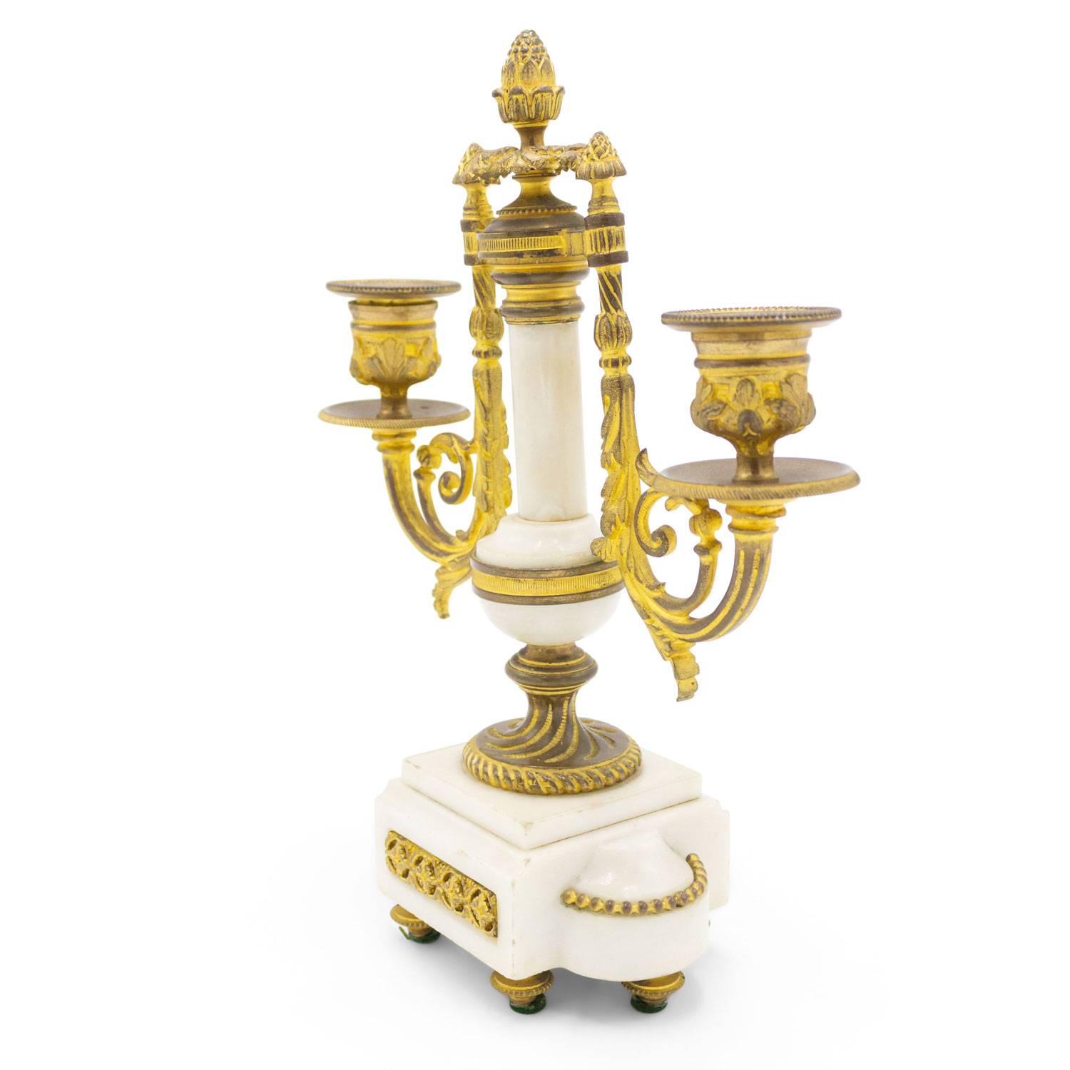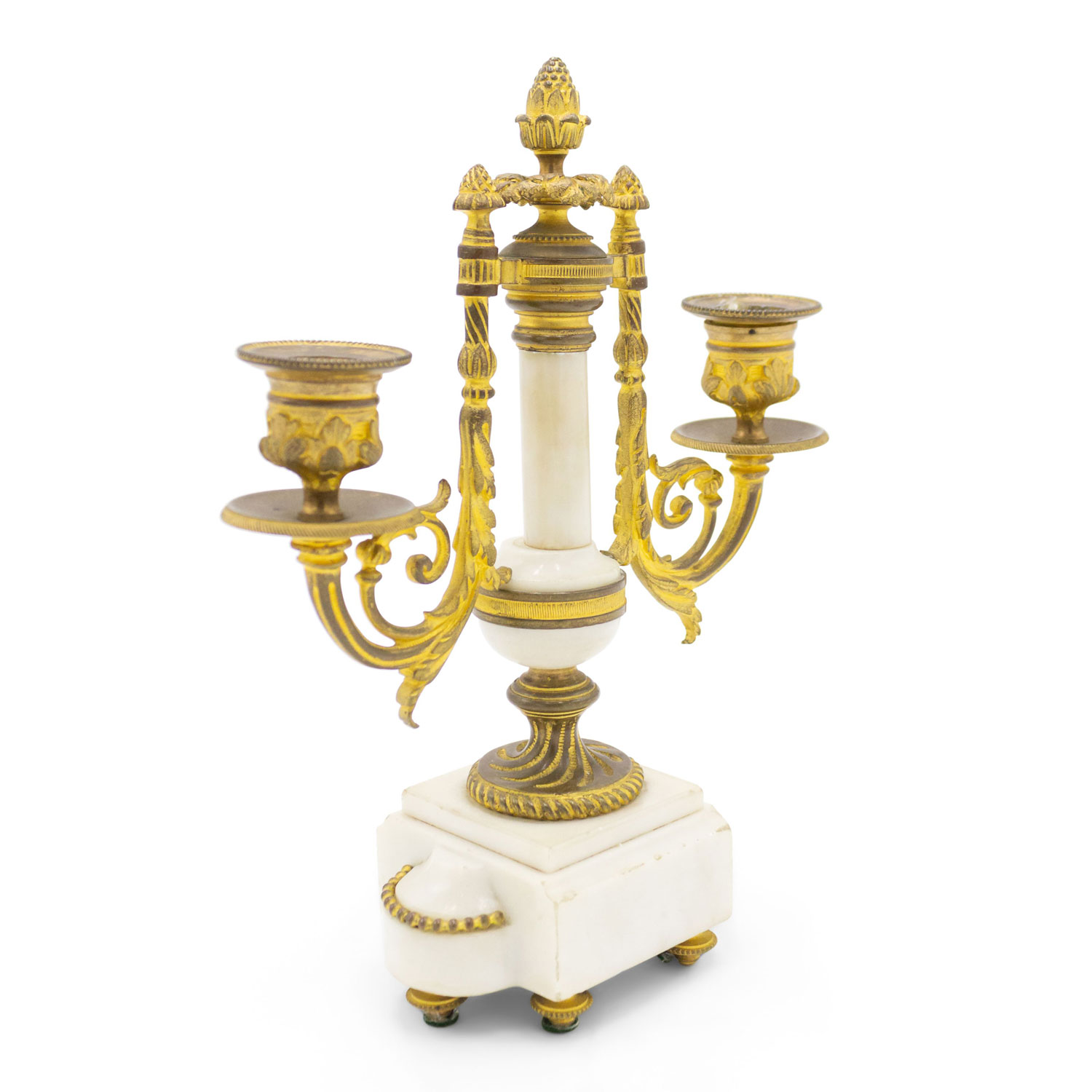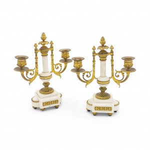 PAIR of French Louis XVI-style (19th Century) white marble and bronze 2 arm candelabras (PRICED AS PAIR)