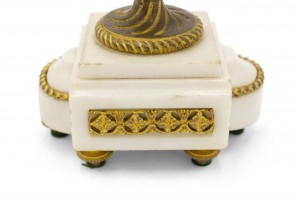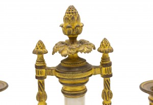 PAIR of French Louis XVI-style (19th Century) white marble and bronze 2 arm candelabras (PRICED AS PAIR).