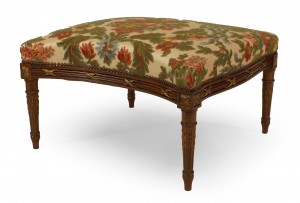Style: French Materials & Techniques: Velvet, walnut Category: Seating Condition: Ottoman dimensions: 25½ in. Needs reupholstery holes throughout it.