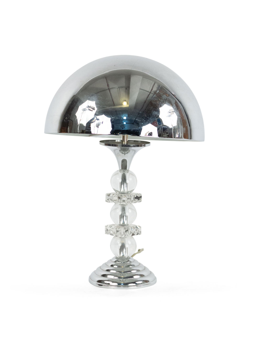 Style: Mid-Century Materials & Techniques: Glass, chrome, dome Category: Lighting Condition: Vintage condition