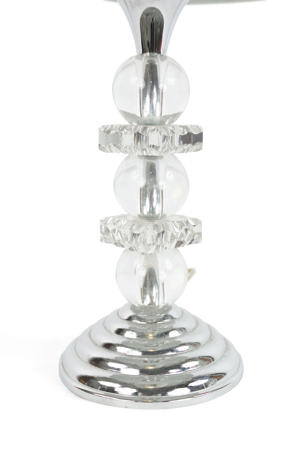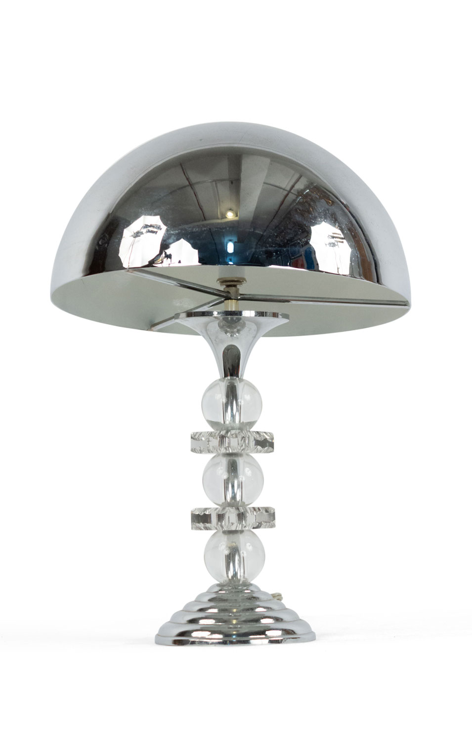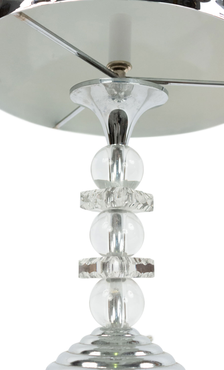 French 1940s table lamps with chrome dome shaped shade and base between alternating 3 large glass balls and 2 squares..