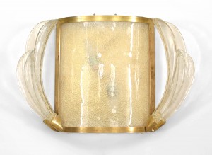 Style: Mid-Century Materials & Techniques: Brass, glass, textured Category: Lighting