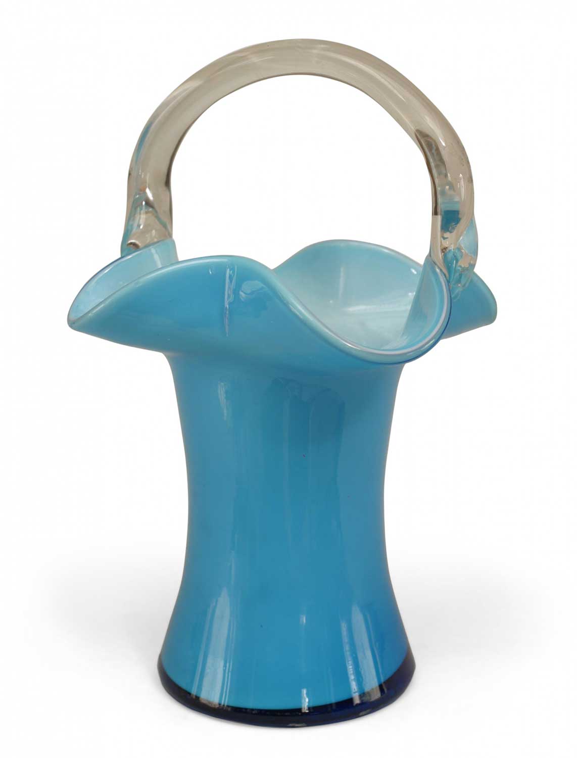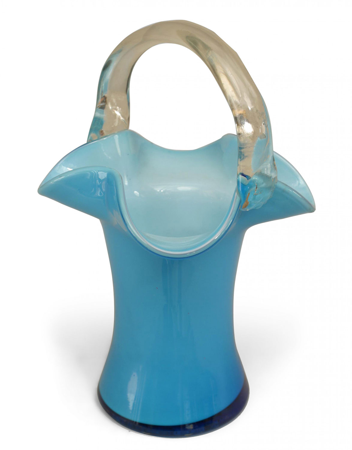 French Victorian (19/20th Cent) blue opaline basket vase with clear handle..