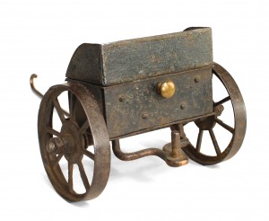 French Victorian bronze cannon with trailer model. (2 pieces).
