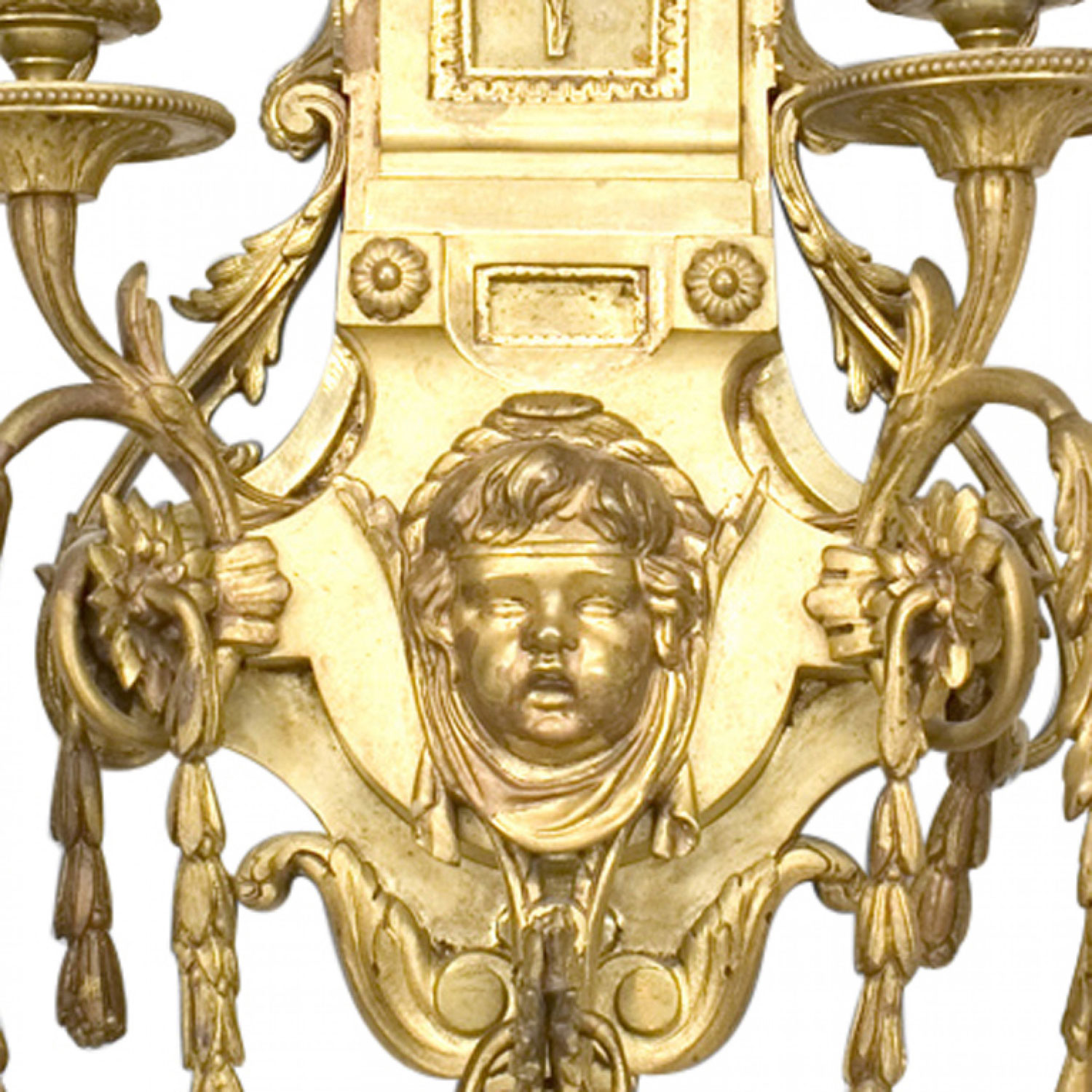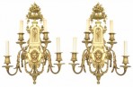 PAIR of French Victorian (19th Cent) bronze 4 light wall lights with heads and scroll arms with filigree design..