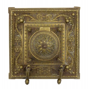 French Victorian bronze square inkwell with 2 cornucopia pen holders.