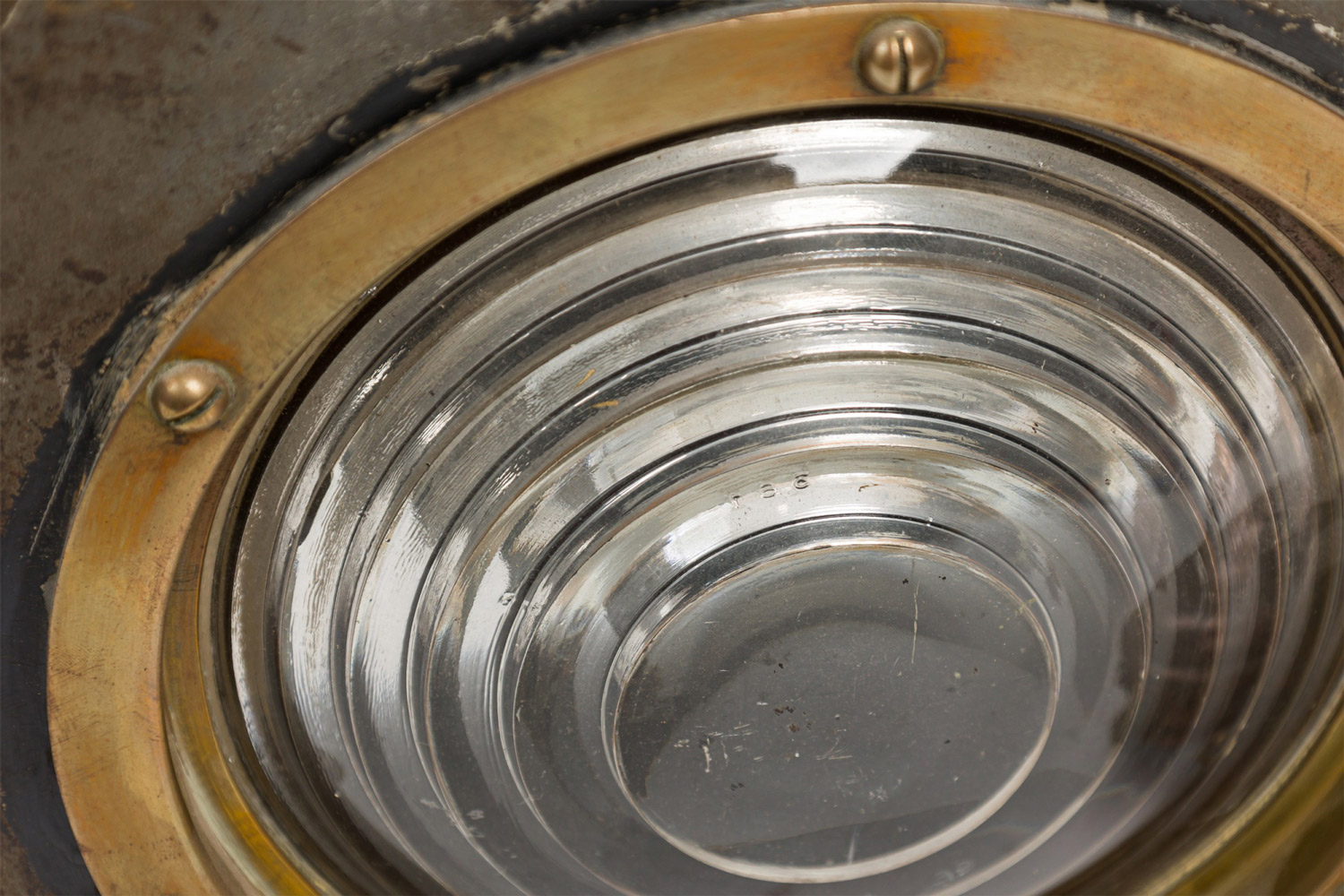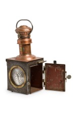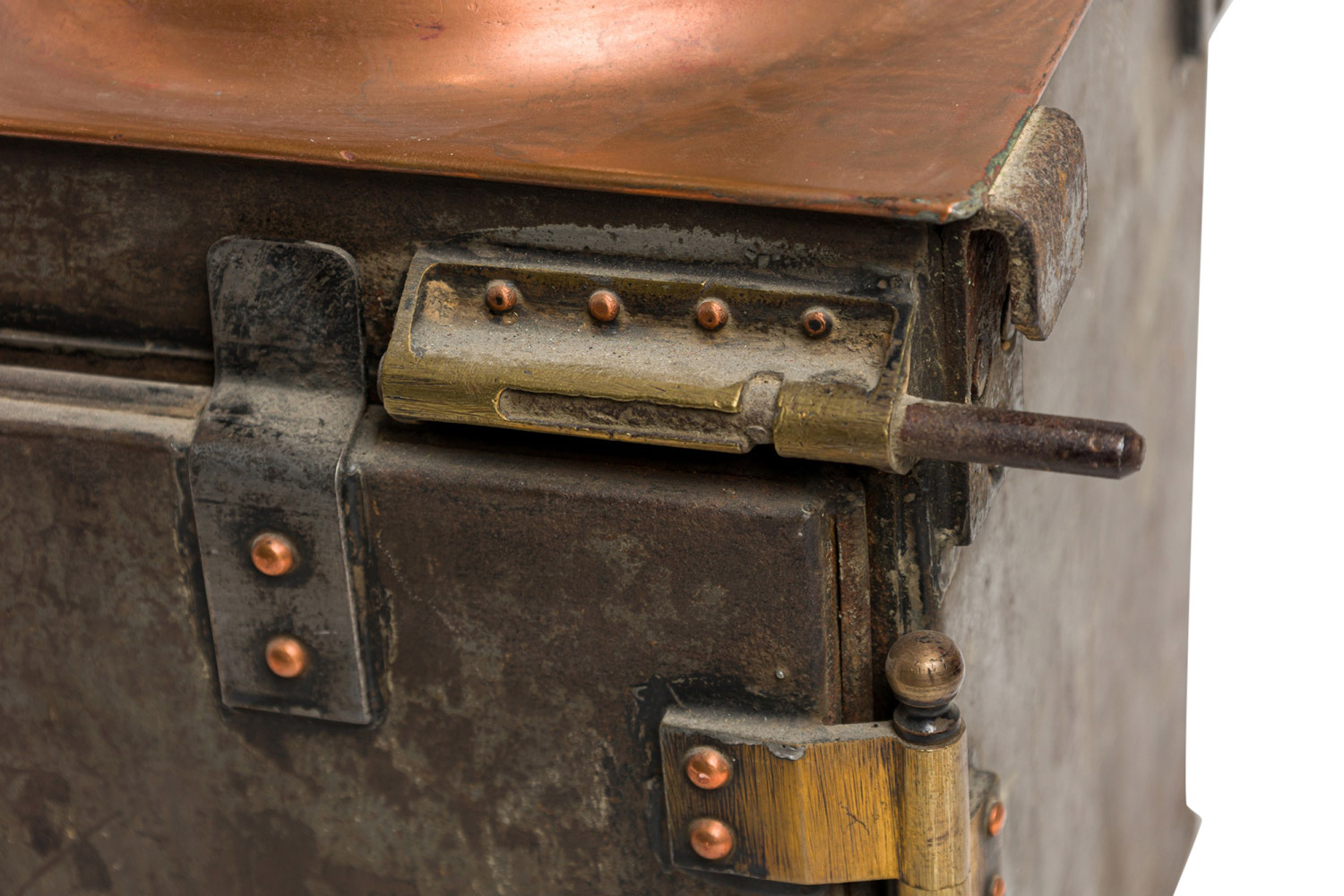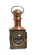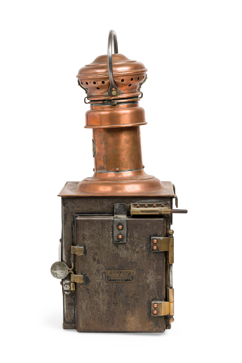 French Victorian copper square railroad embarkment lantern with 2 glass panels..