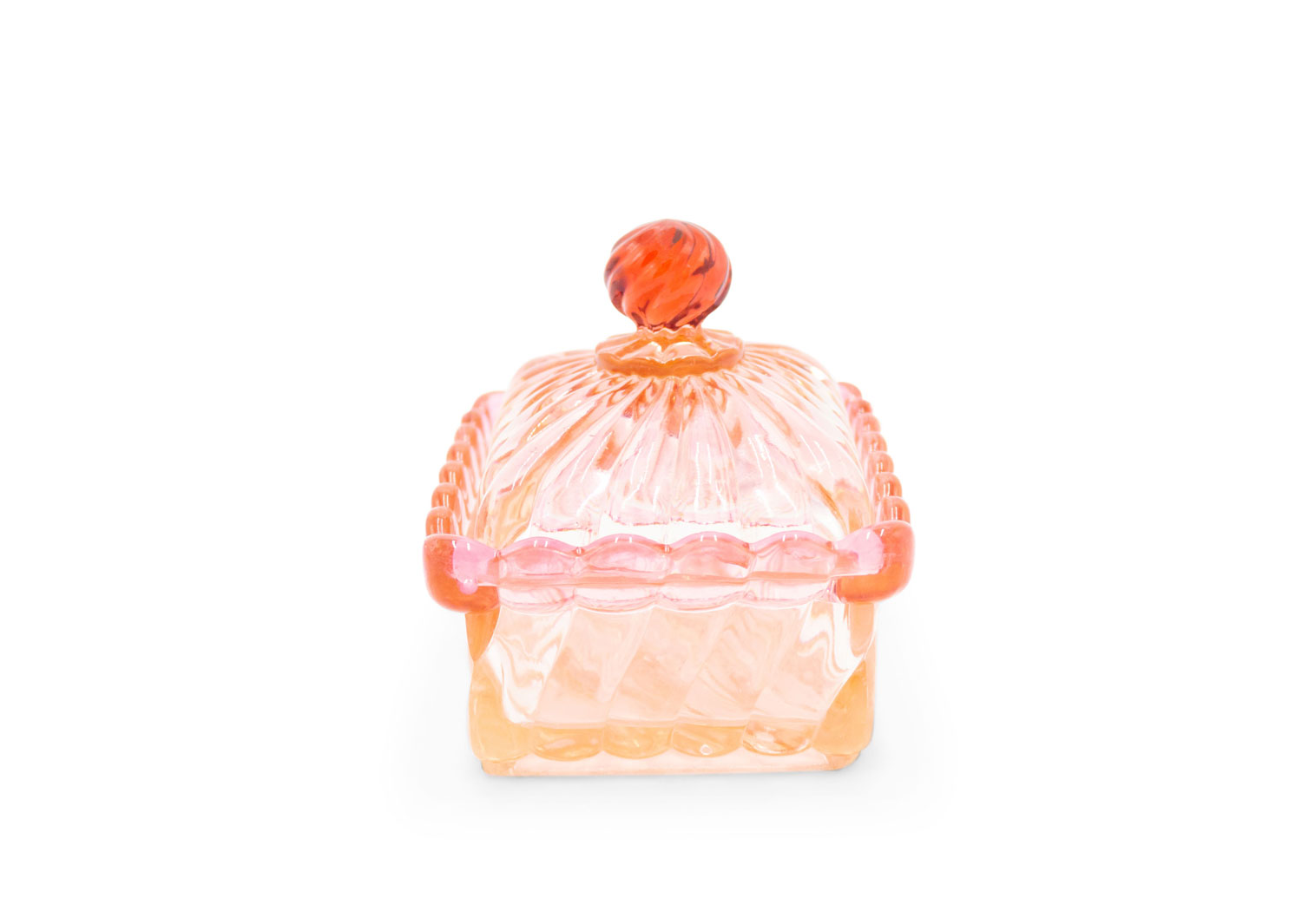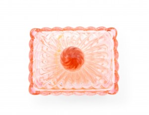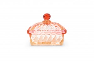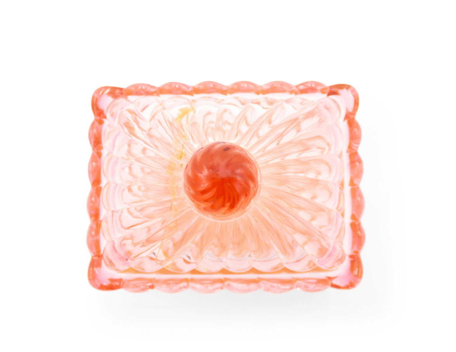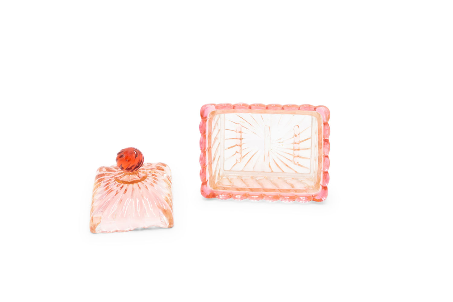 French Victorian cranberry colored crystal rectangular powder box with swirl design