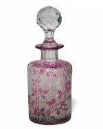 French Victorian cranberry etched crystal perfume bottle with stopper and floral design.