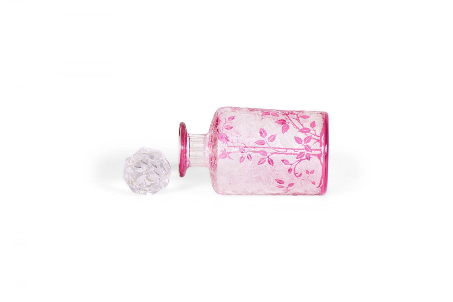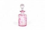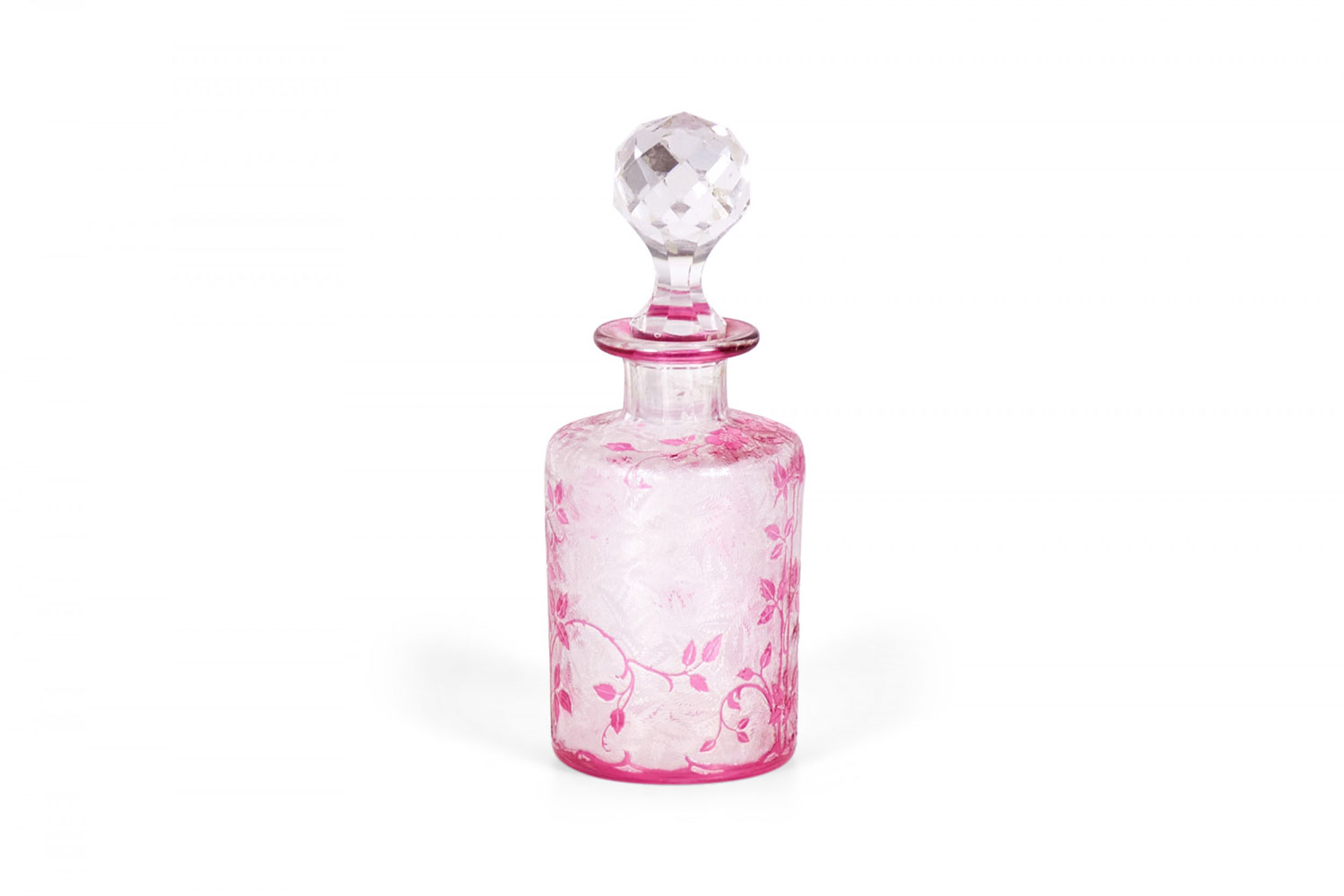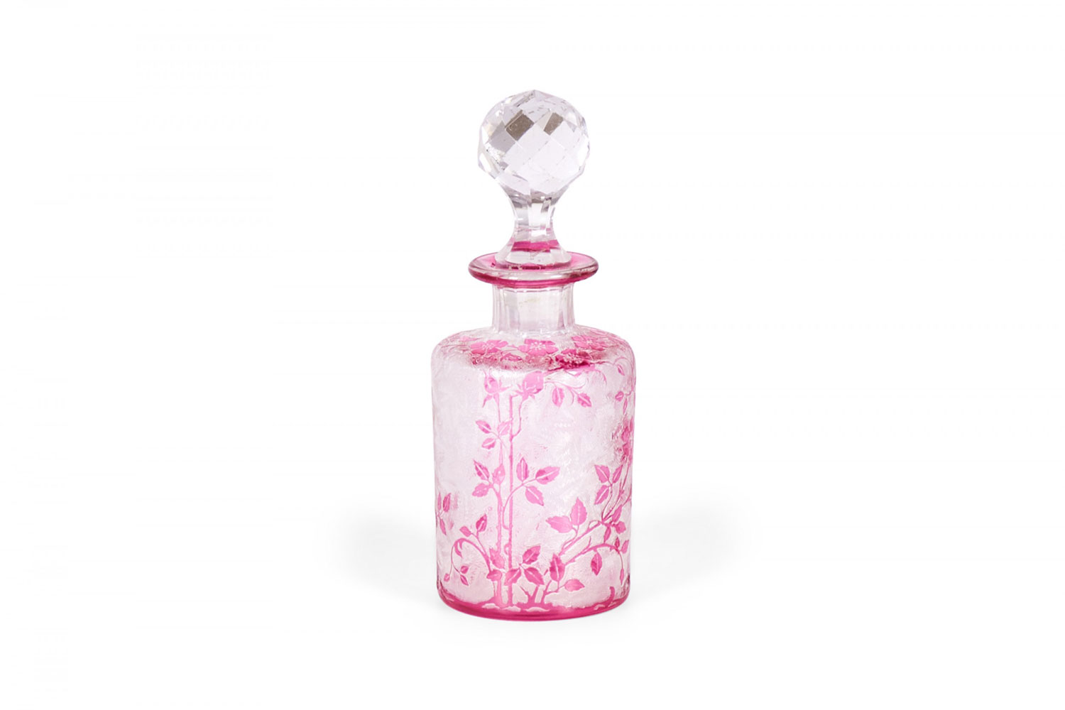French Victorian cranberry etched crystal perfume bottle with stopper and floral design
