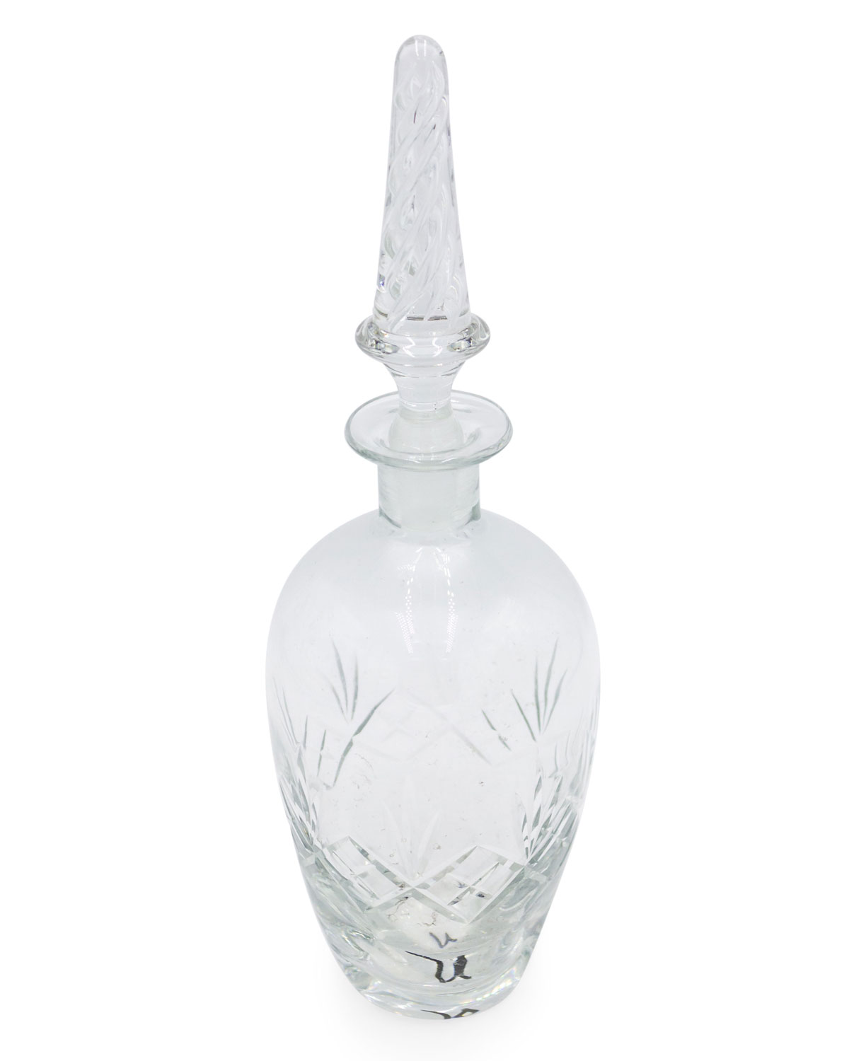 2 French Victorian-style crystal decanters with cut center design and swirl stopper. (PRICED EACH)