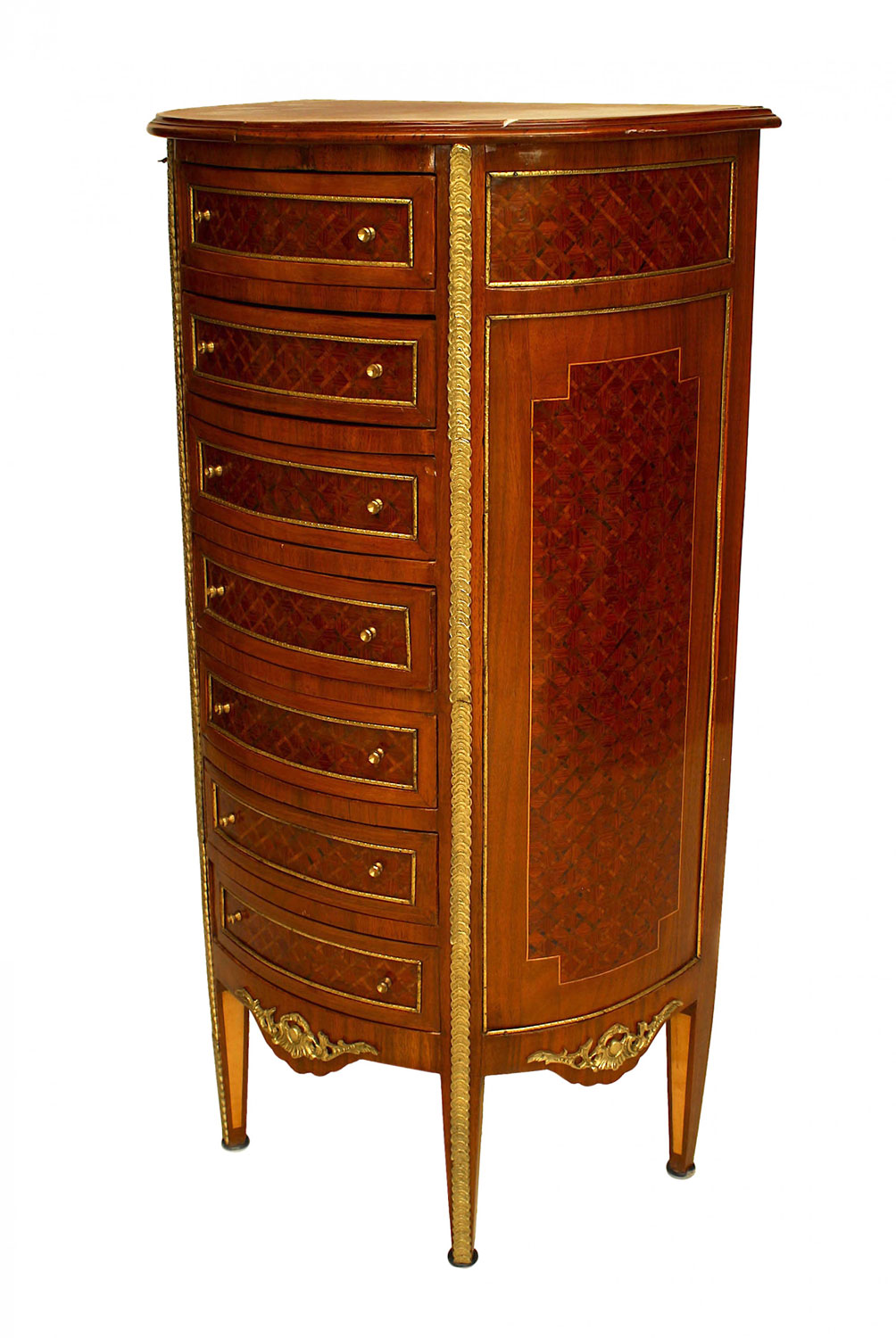 Style: French Materials & Techniques: Wood, bronze, fruitwood, inlaid Category: Cabinets & Case Goods, Bedroom