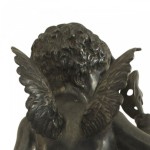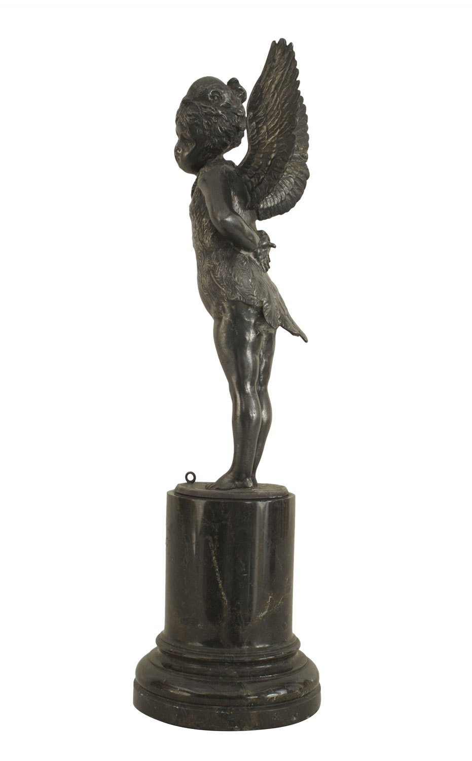 PAIR of French Victorian silver plated winged cupid figures on round shaped black marble pedestal base