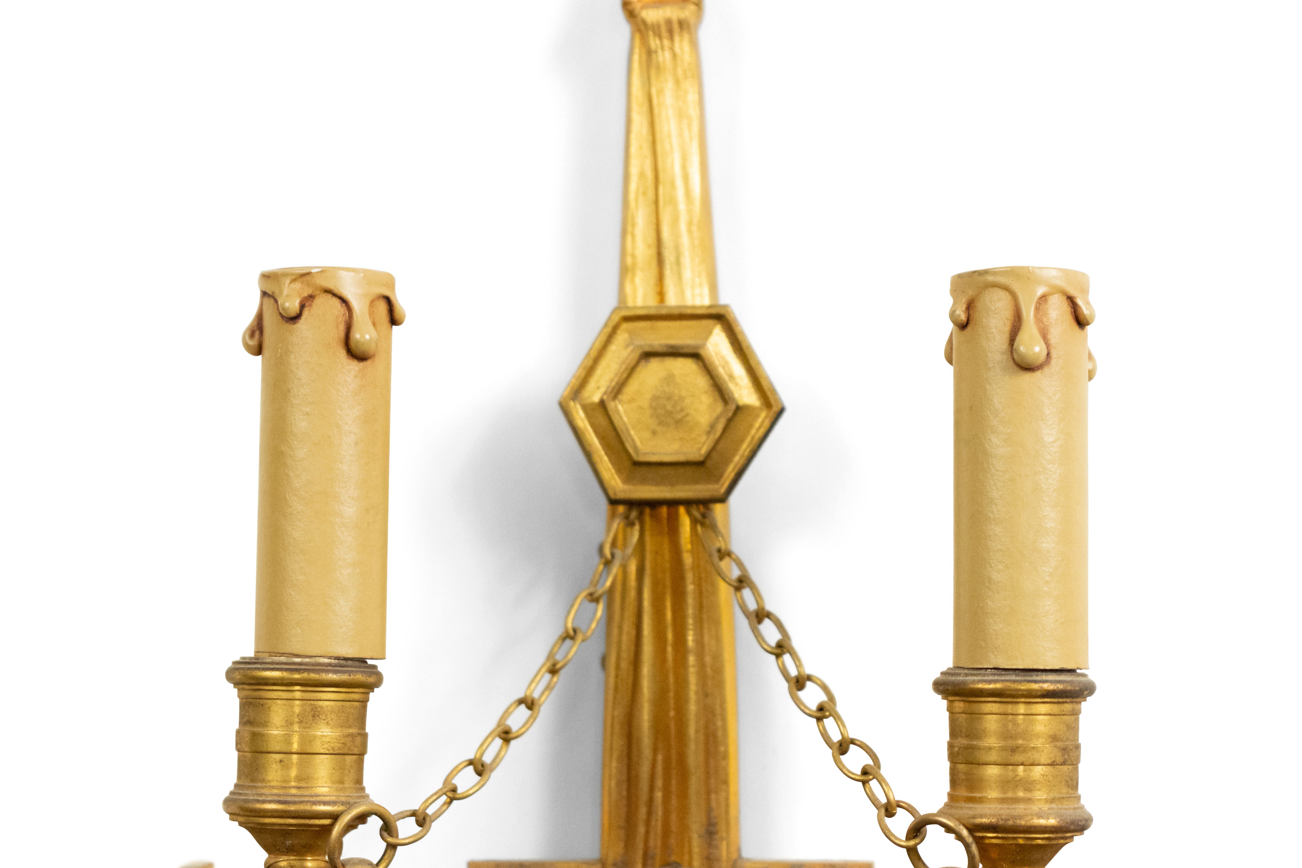 Pair of French Victorian Style Bronze Dore 3-Tier Wall Sconces