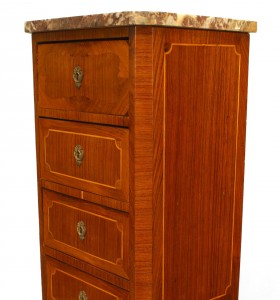 Style: French Materials & Techniques: Marble, walnut, inlaid Category: Cabinets & Case Goods