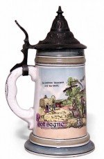 German Porcelain and Pewter Beer Stein