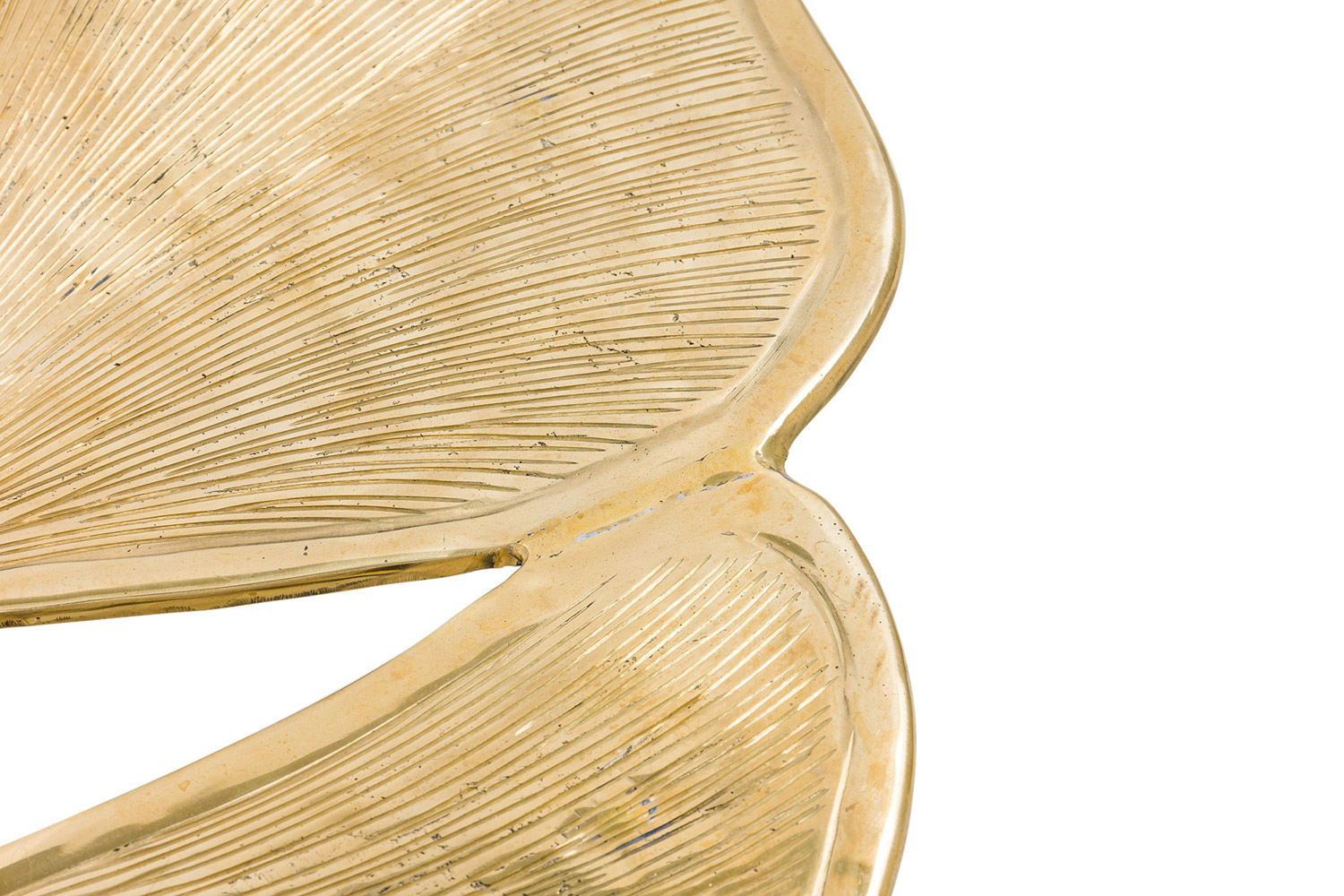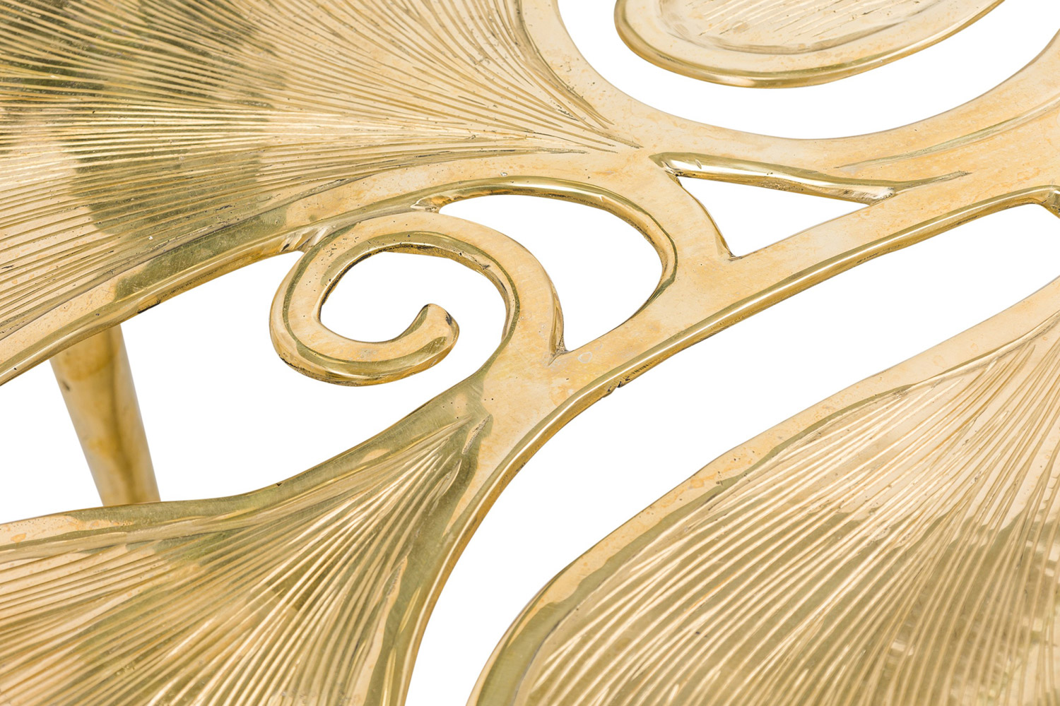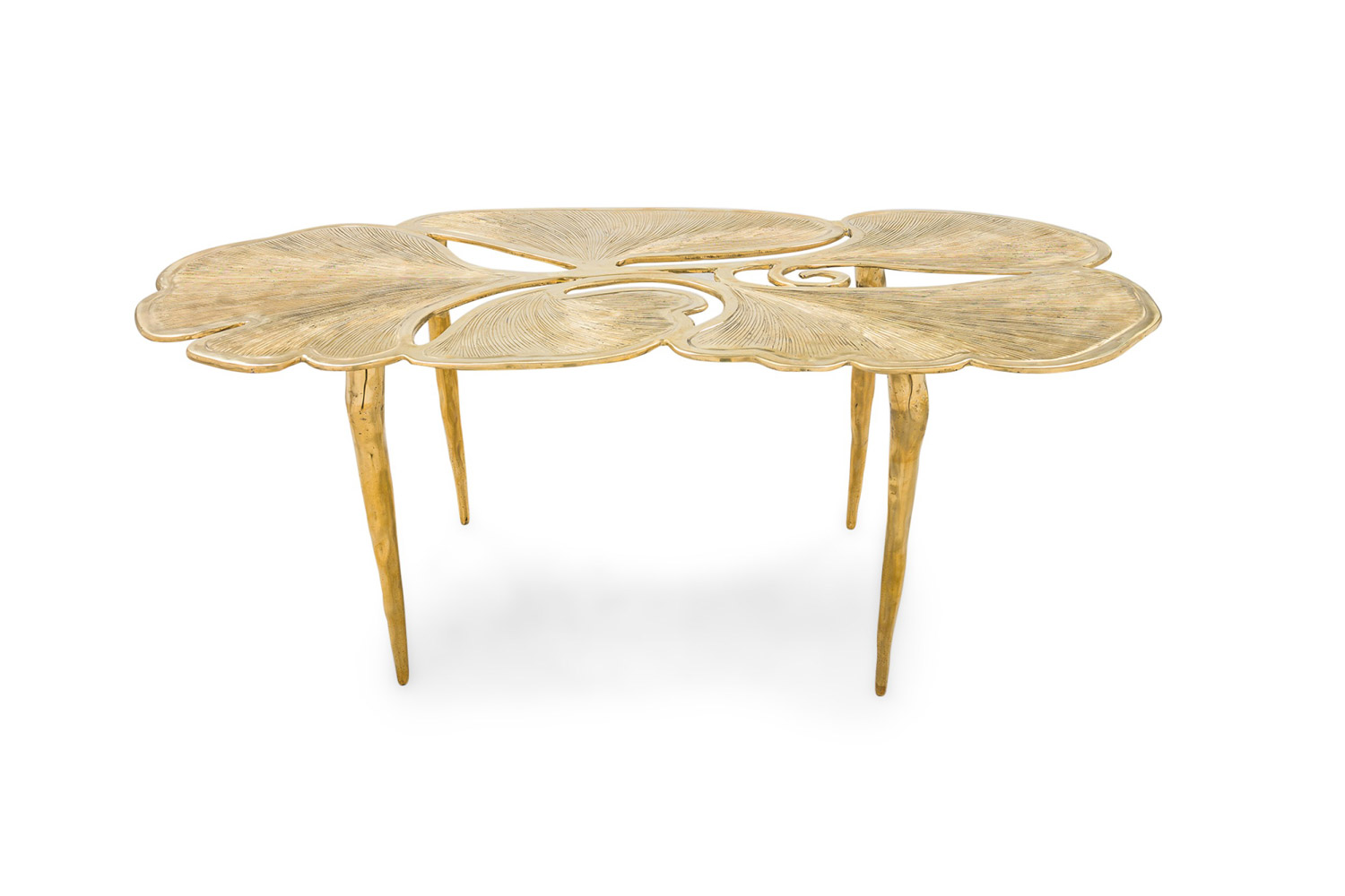 "Gingko" Biomorphic coffee table featuring an intricately carved leaf-inspired tabletop and base constructed of polished hand-forged bronze.