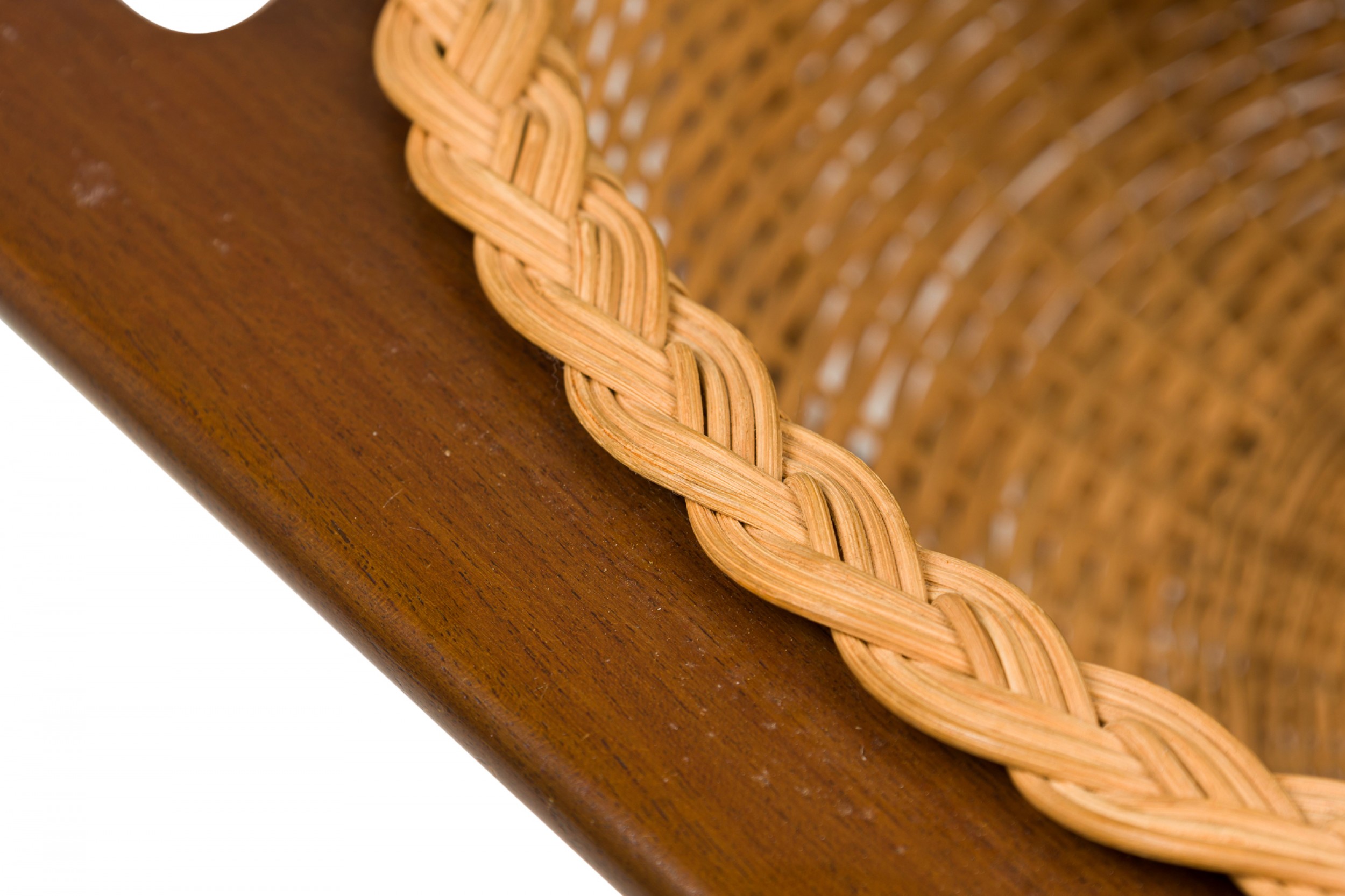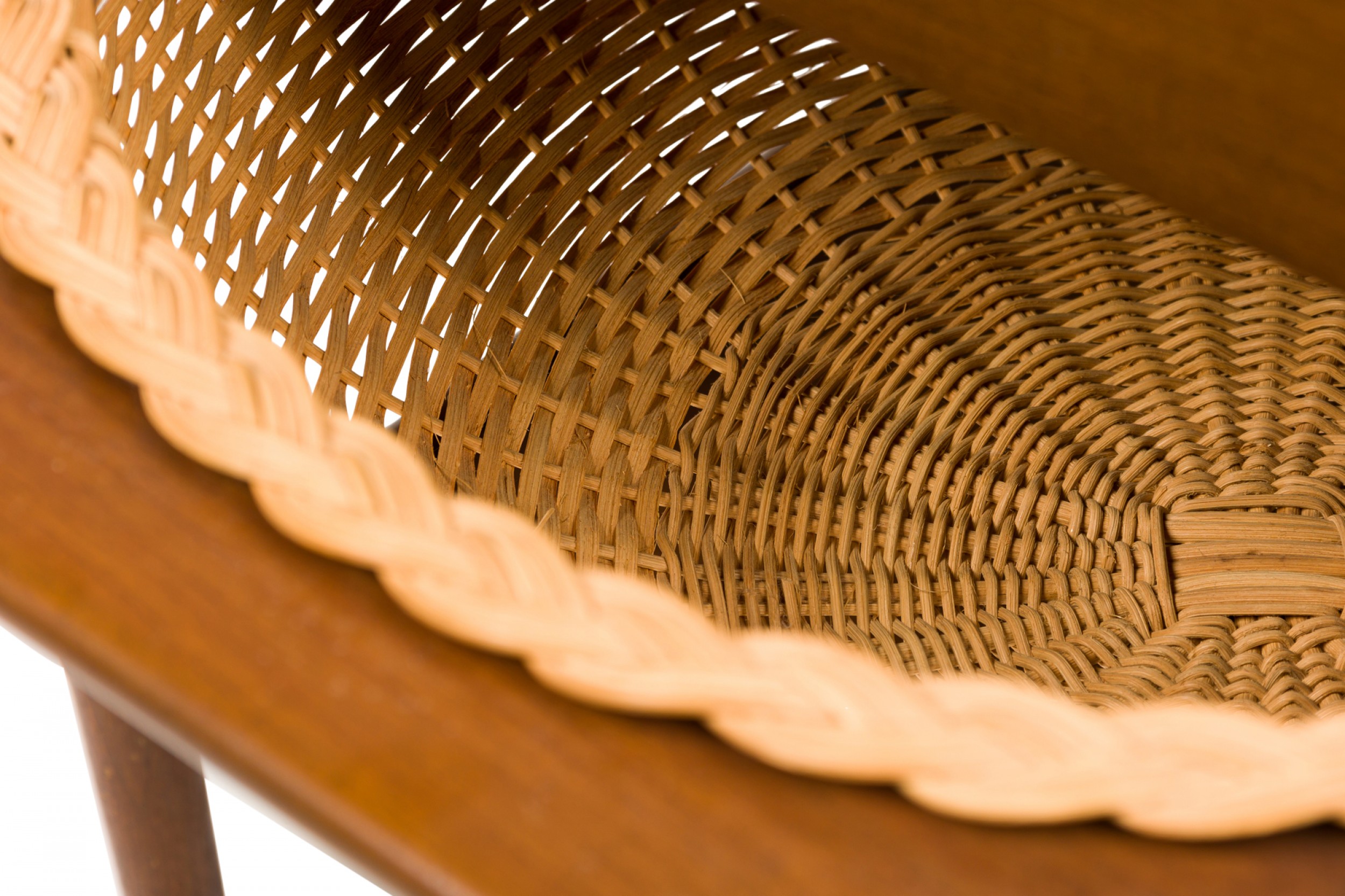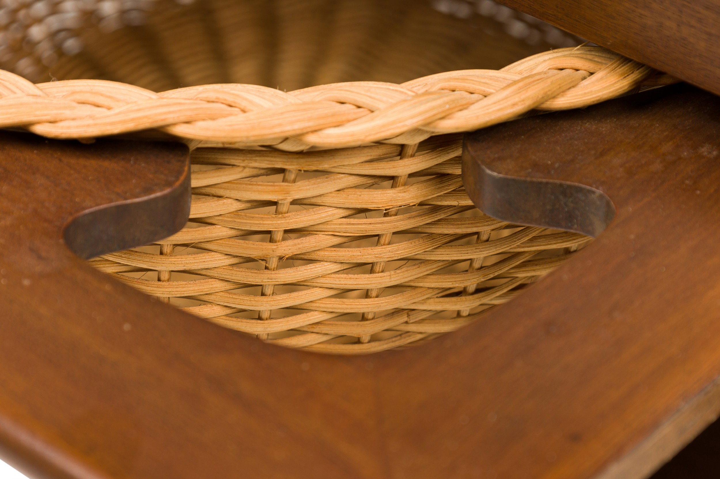 Hans Wegner for Andreas Tuck Mid-Century Teak Wood Drop Leaf Woven Basket Sewing Table