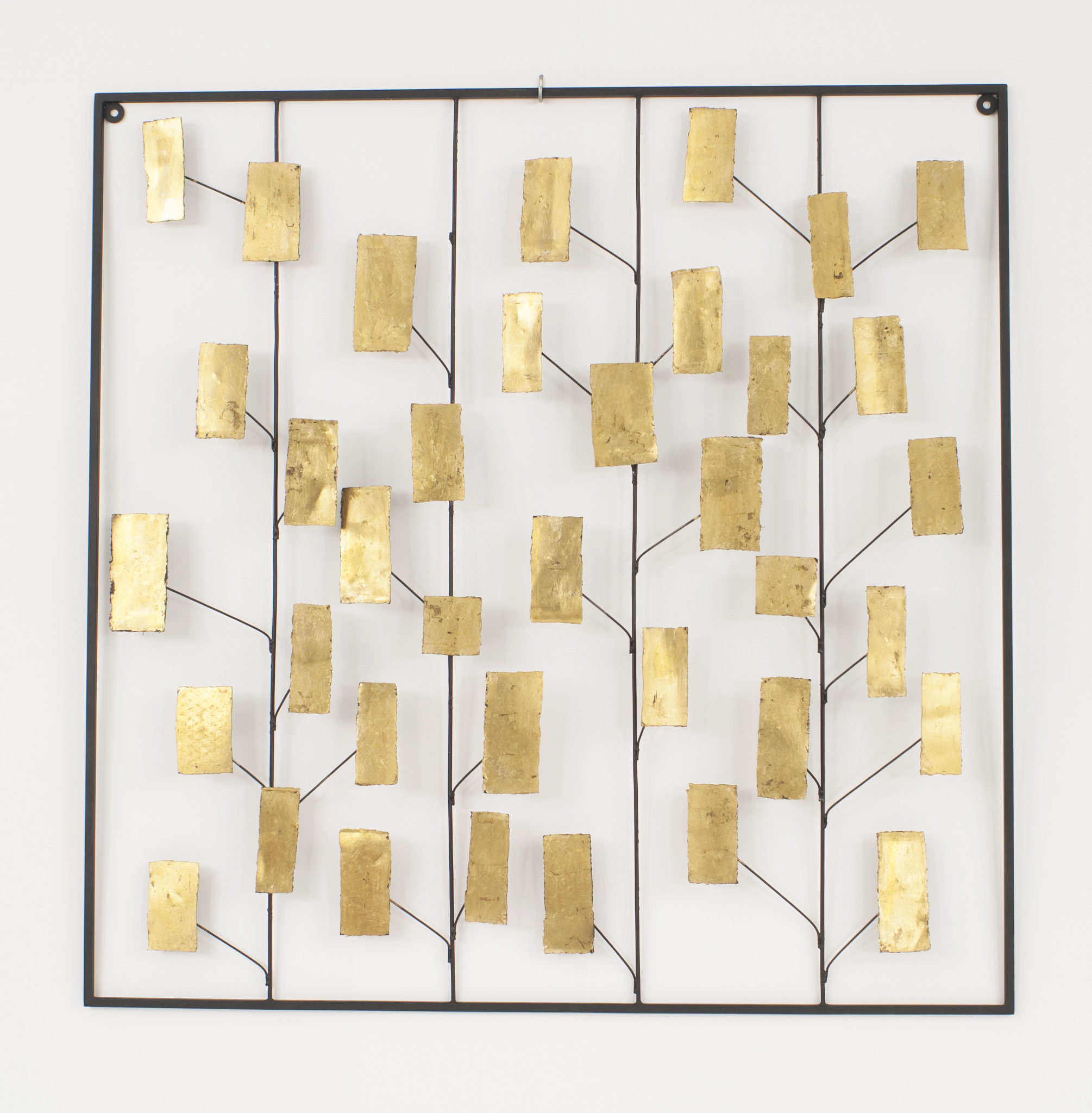 Square gilt metal contemporary decorative wall art titled "Iron Tree"