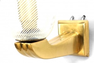 Style: Mid-Century Materials & Techniques: Brass, glass Category: Lighting