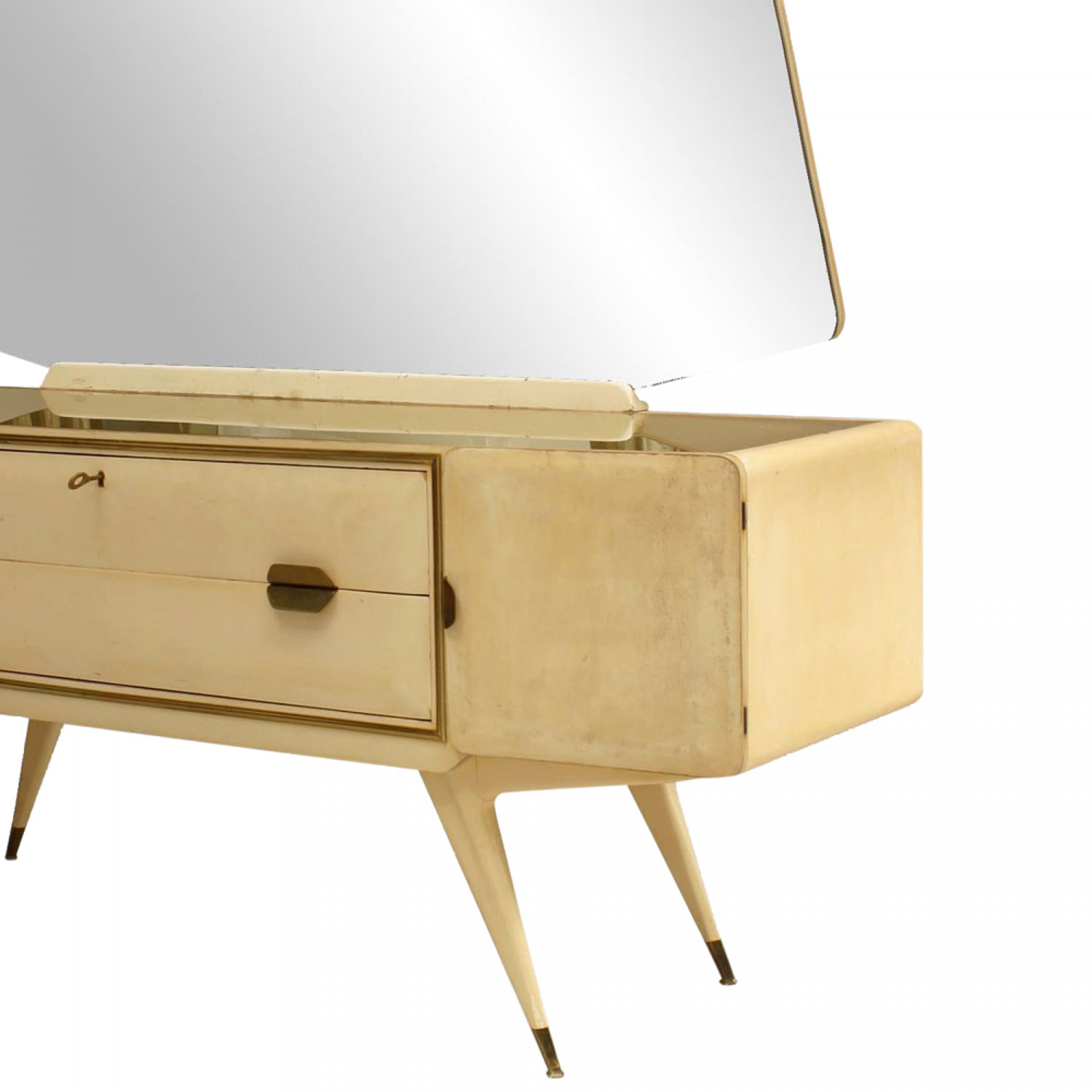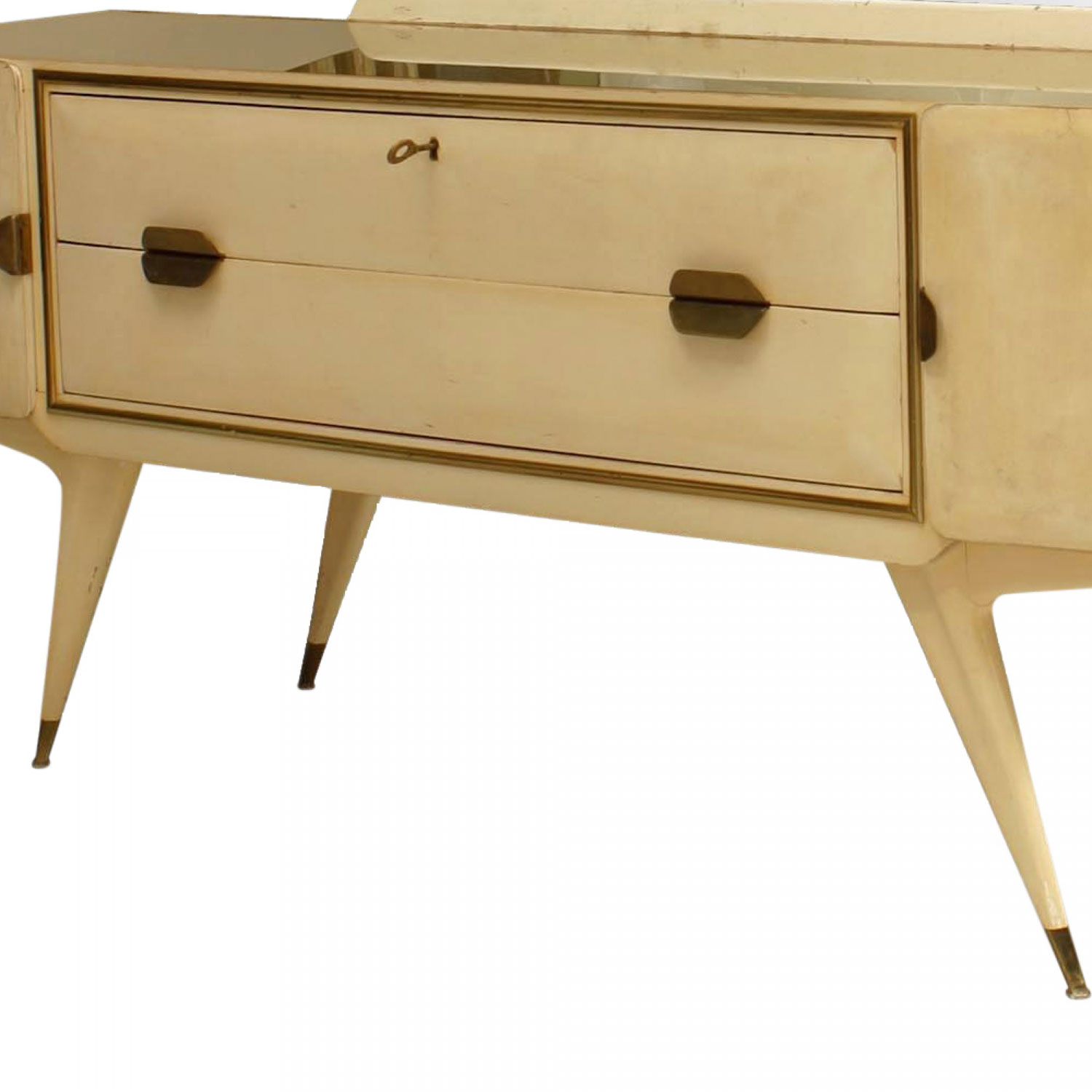 Style: Mid-Century Materials & Techniques: Brass, glass, gold, lacquered Category: Cabinets & Case Goods, Bedroom