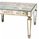 Style: Mid-Century Materials & Techniques: Wood, mirrored Category: Tables Condition: Antique condition. Missing one piece of class on leg