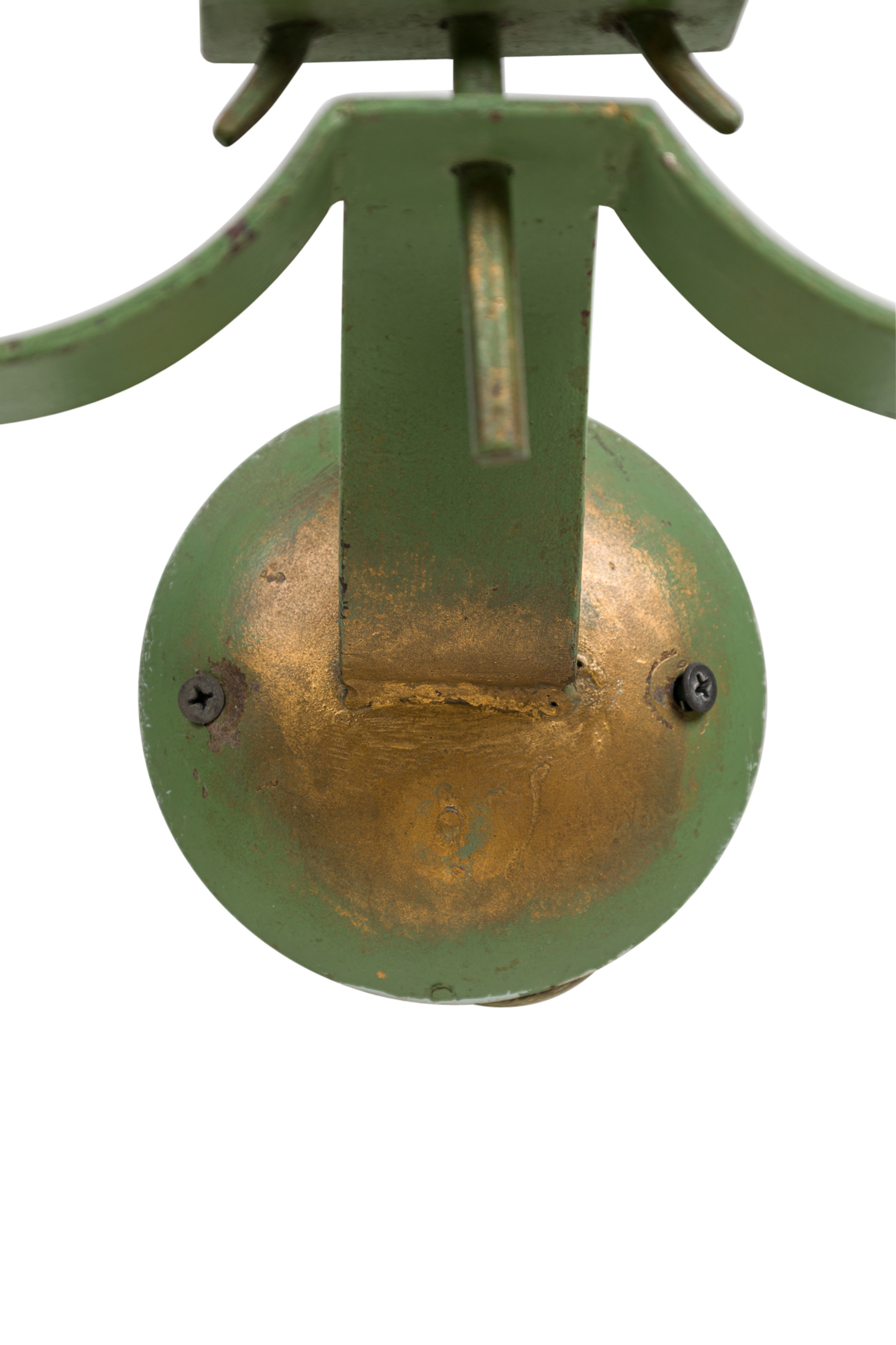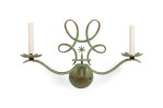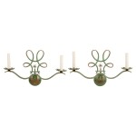French Art Deco green patina metal sconces (pair) with 2 scroll arms