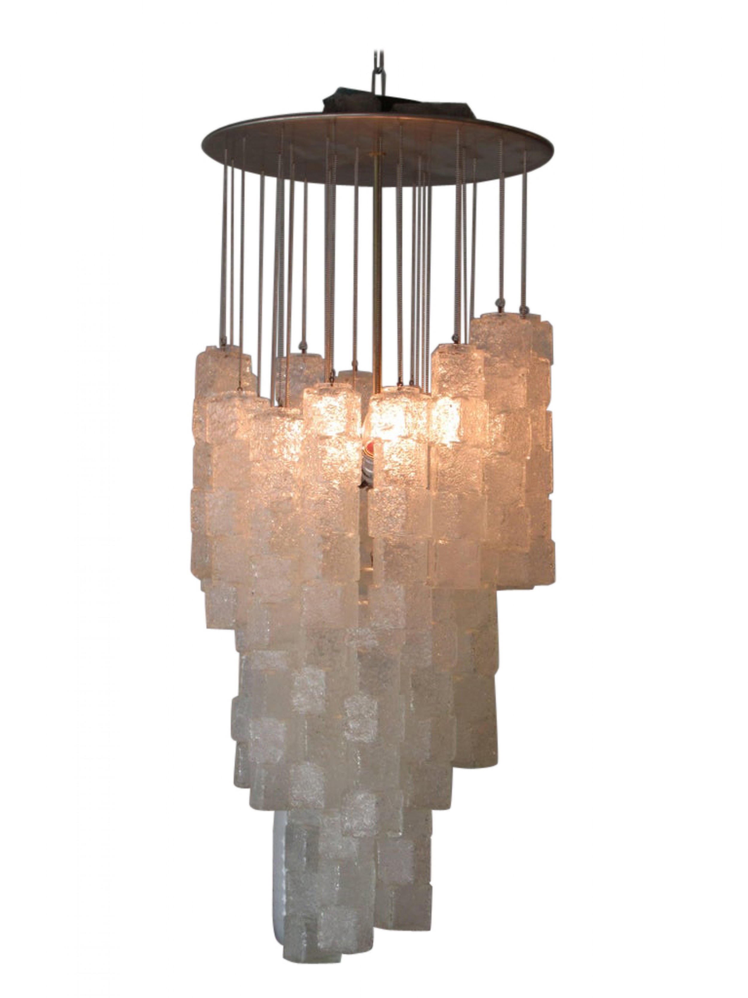 Italian Modern Hand Blown Glass Ice Cube Chandelier, Mazzega