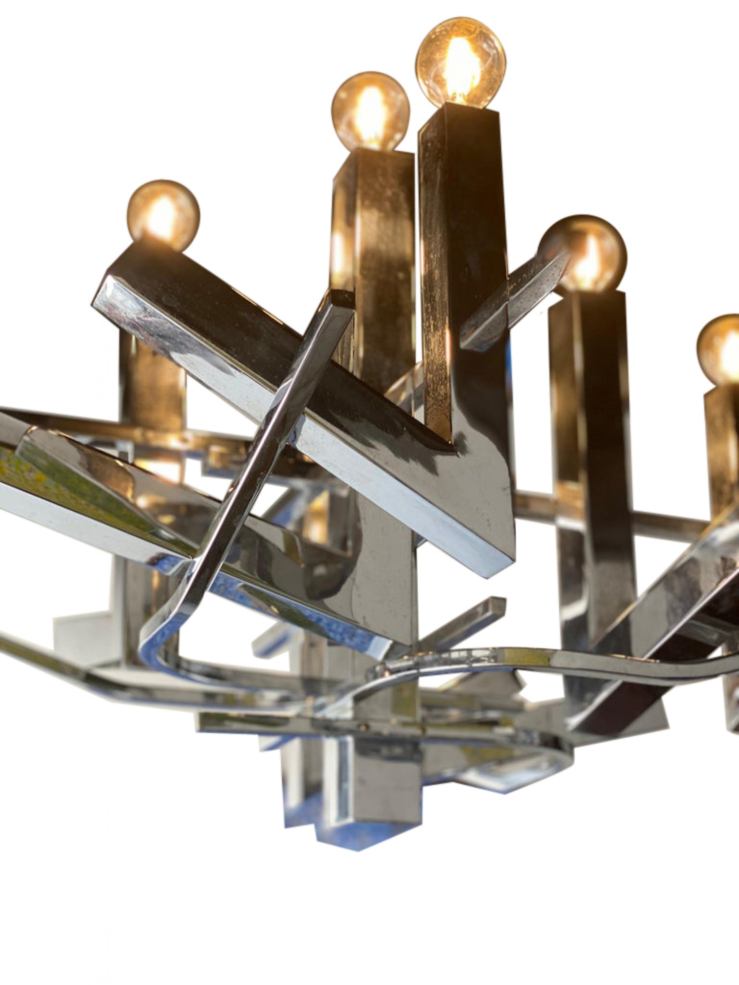 Italian Modern Polished Chrome 12-Light Chandelier, Sciolari