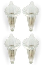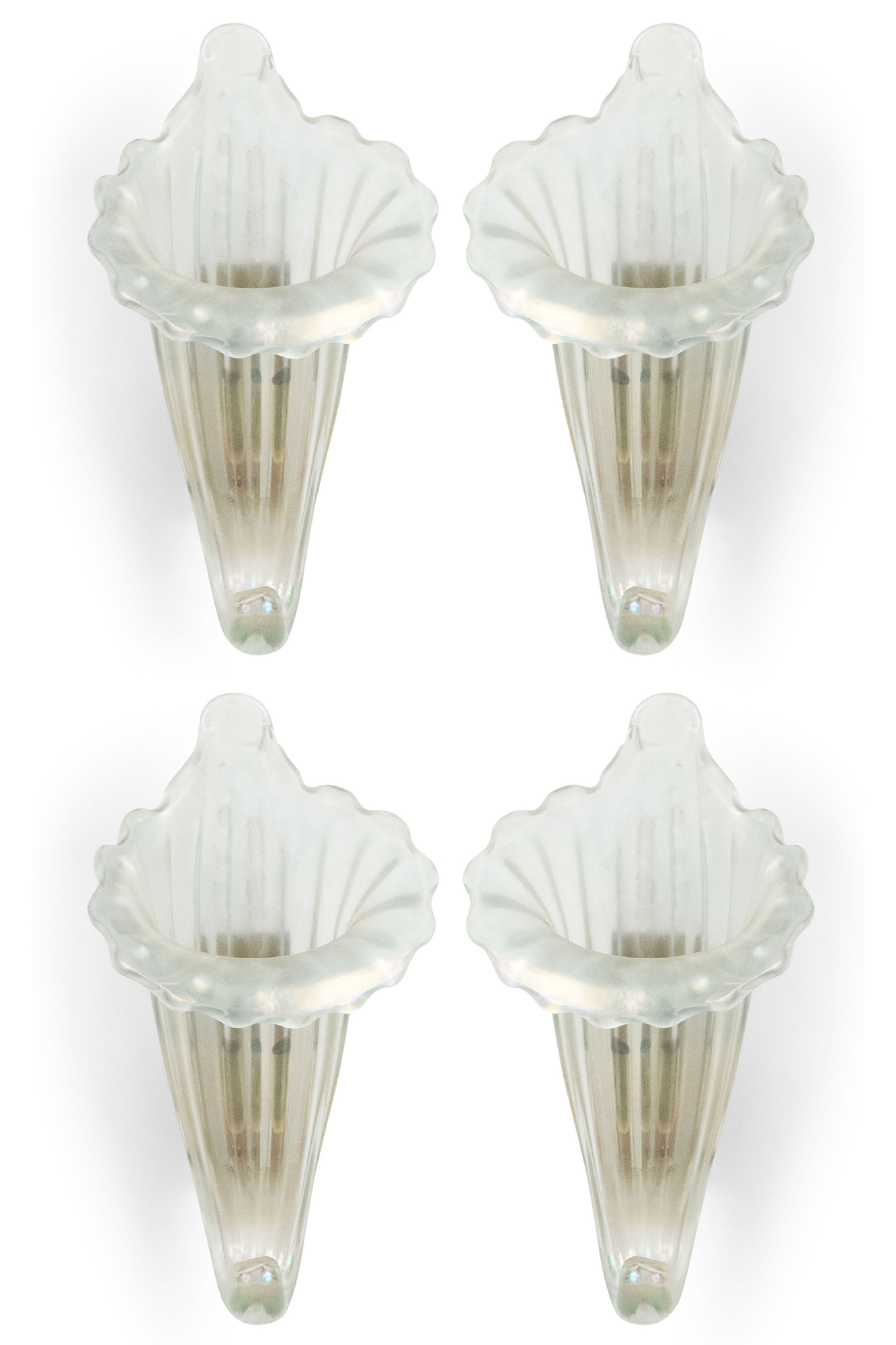4 Italian Murano iridescent glass wall sconces with a fluted cornucopia form supported by a brass bracket. (PRICED EACH).