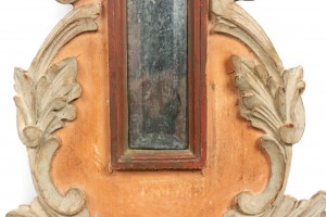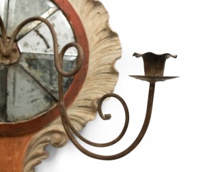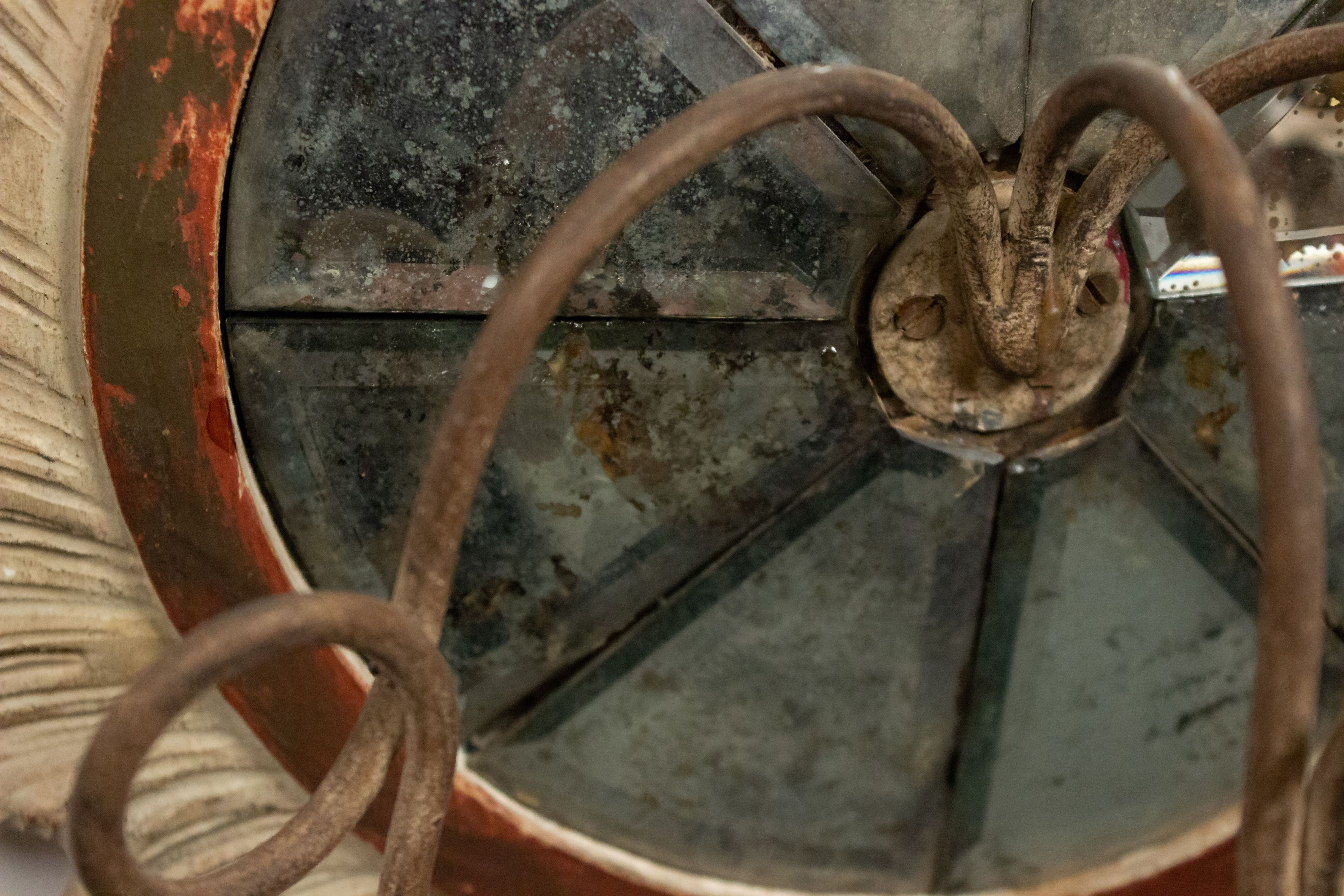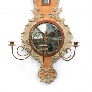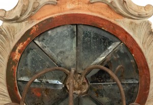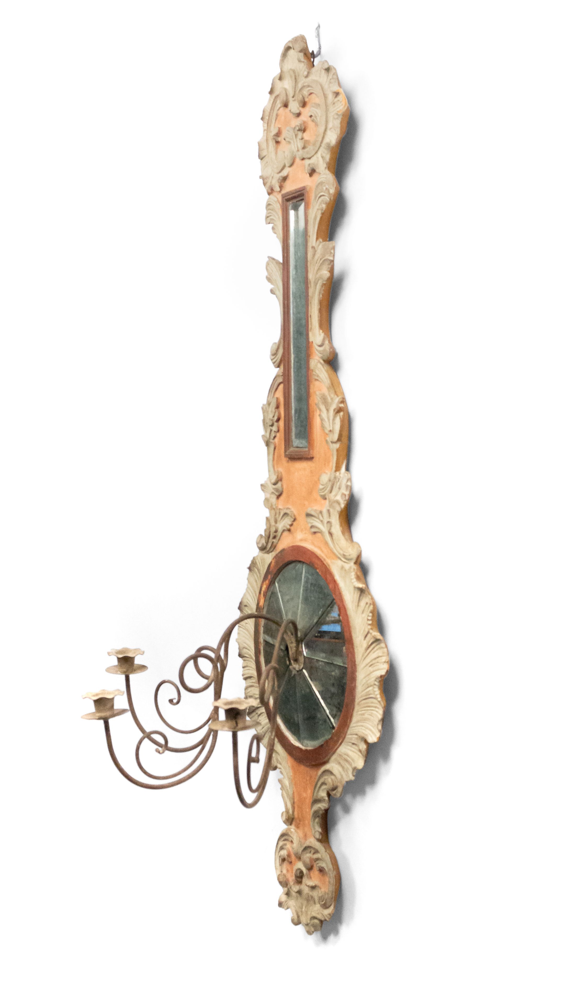 Style: Italian Materials & Techniques: Brass, carved, glass, painted, wood Category: Lighting Condition: One mirror is damaged.