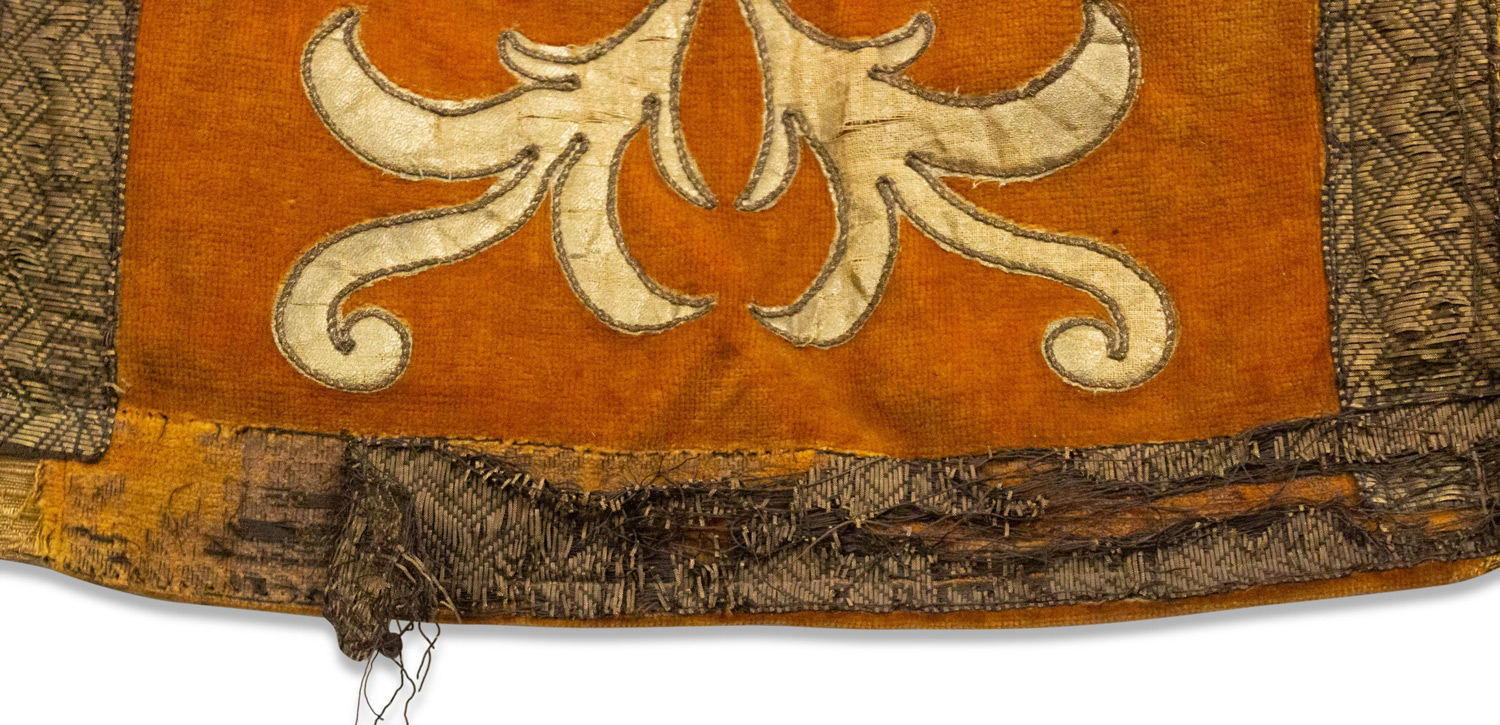 Style: English Materials & Techniques: Gold, velvet, embroidered Category: Cleared Art, Rugs/Textile