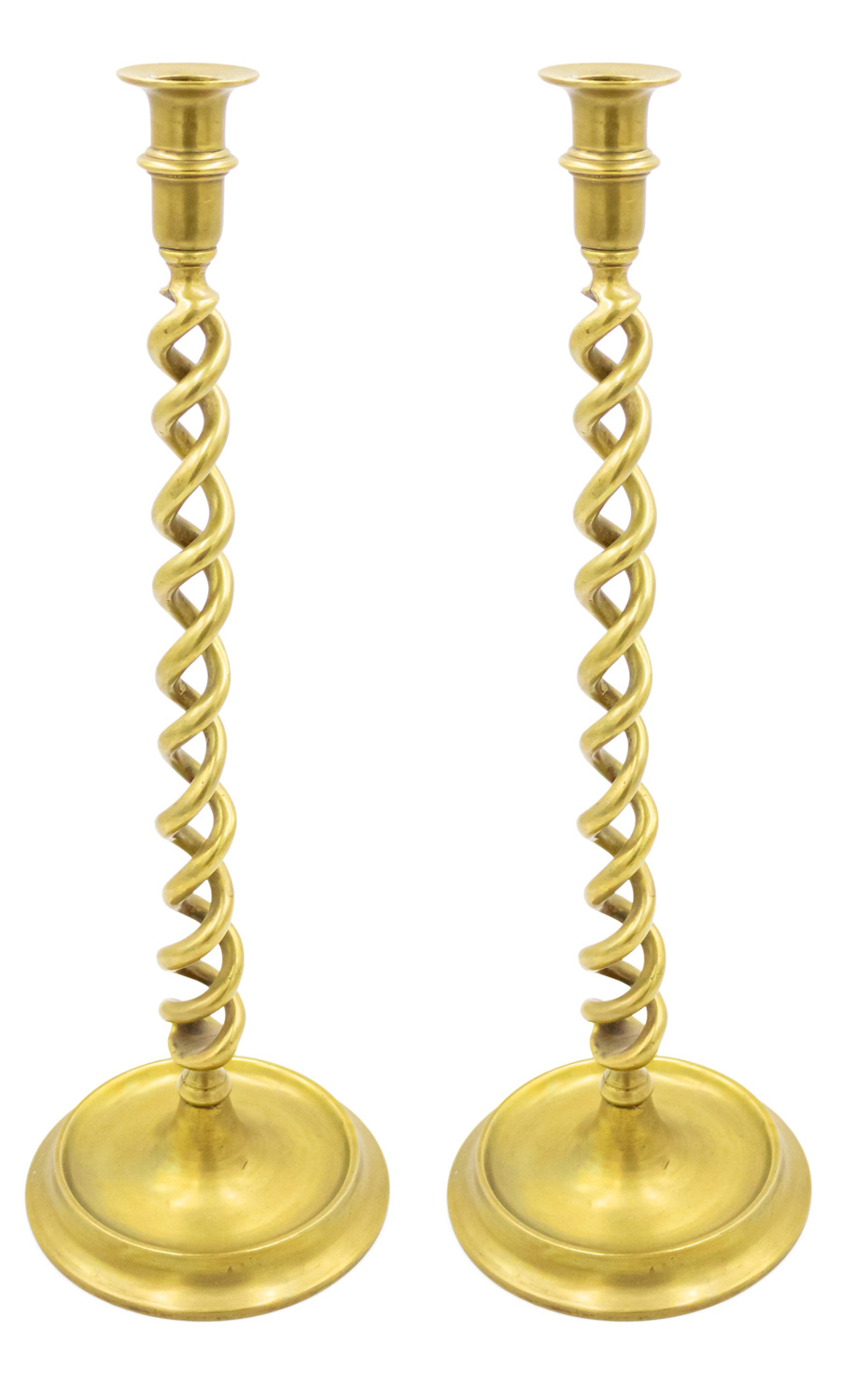 PAIR of Italian Renaissance-style (19th Century) brass double swirl candlesticks (PRICED AS PAIR).
