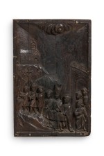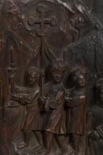Italian Renaissance (16th Century) oak carved relief wall plaque of religious figure with children..