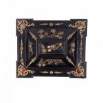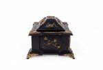 Italian Renaissance-style (19th Century) large black lacquered box with semi precious stones and bronze floral trim